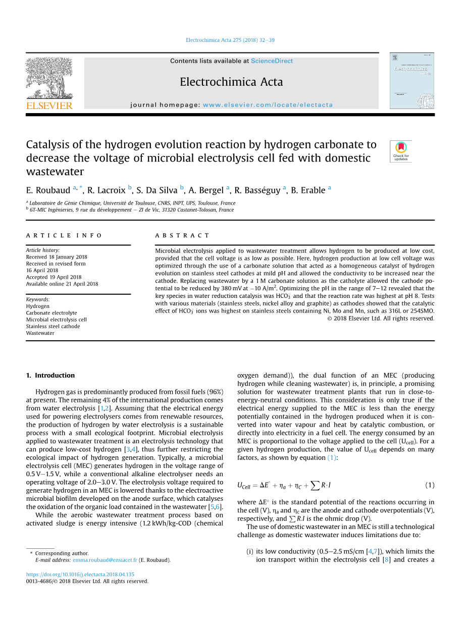 E. Roubaud a, *, R. Lacroix b, S. Da Silva b, A. Bergel a, R. Basseguy a, B. Erable a