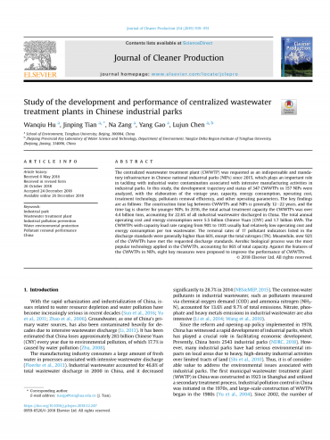 关键词:工业园区;污水处理厂;工业污染防治 ;水环境保护;污染物去除效果;中国