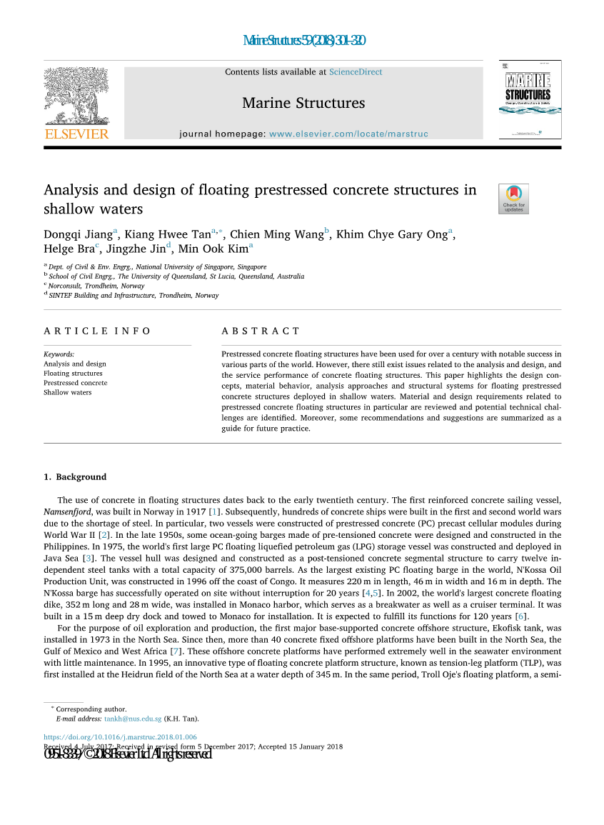 在建筑结构中使用混凝土可以追溯到二十世纪初。 第一艘钢筋混凝土帆船纳森弗德号于1917年在挪威建成[1]。 随后,由于钢材短缺,在第一次和第二次世界大战中建造了数百艘混凝土船。 特别是在第二次世界大战期间,两艘船采用了预应力混凝土(PC)预制蜂窝模块[2]。 在20世纪50年代后期,一些由预应力混凝土制成的远洋驳船在菲律宾设计和建造。 1975年,世界上第一台大型PC液化石油气(LPG)储存船在爪哇海建造和部署[3]。 船体设计和建造成后张混凝土分段结构,可承载12个独立钢罐,总容量为375,000桶。 作为世界上最大的现代化PC驳船驳船,恩科萨号石油生产单位于1996年在刚果海岸建造。 它长220米,宽46米,深16米。恩科萨号驳船已经在现场成功运行了20年[4,5]。 在2002年,世界上最大的长352米,宽28米的混凝土护堤被安装在摩纳哥港口,作为防波堤和巡洋舰码头。 它建在一个15米深的干船坞内,并被拖到摩纳哥进行安装。 预计将有120年的历史[6]。