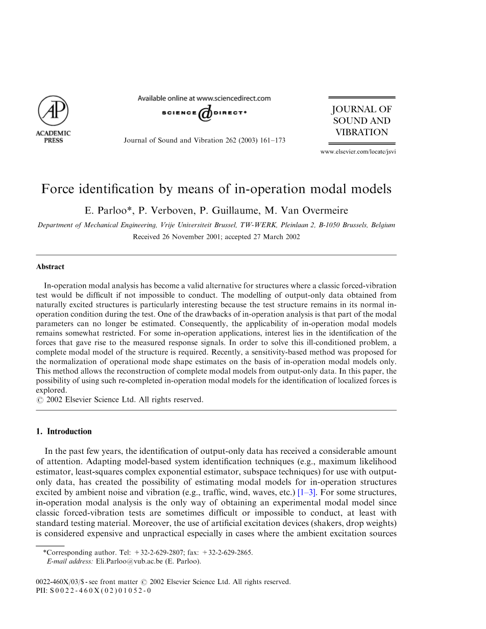 E. Parloo*,P. Verboven, P. Guillaume, M. Van Overmeire