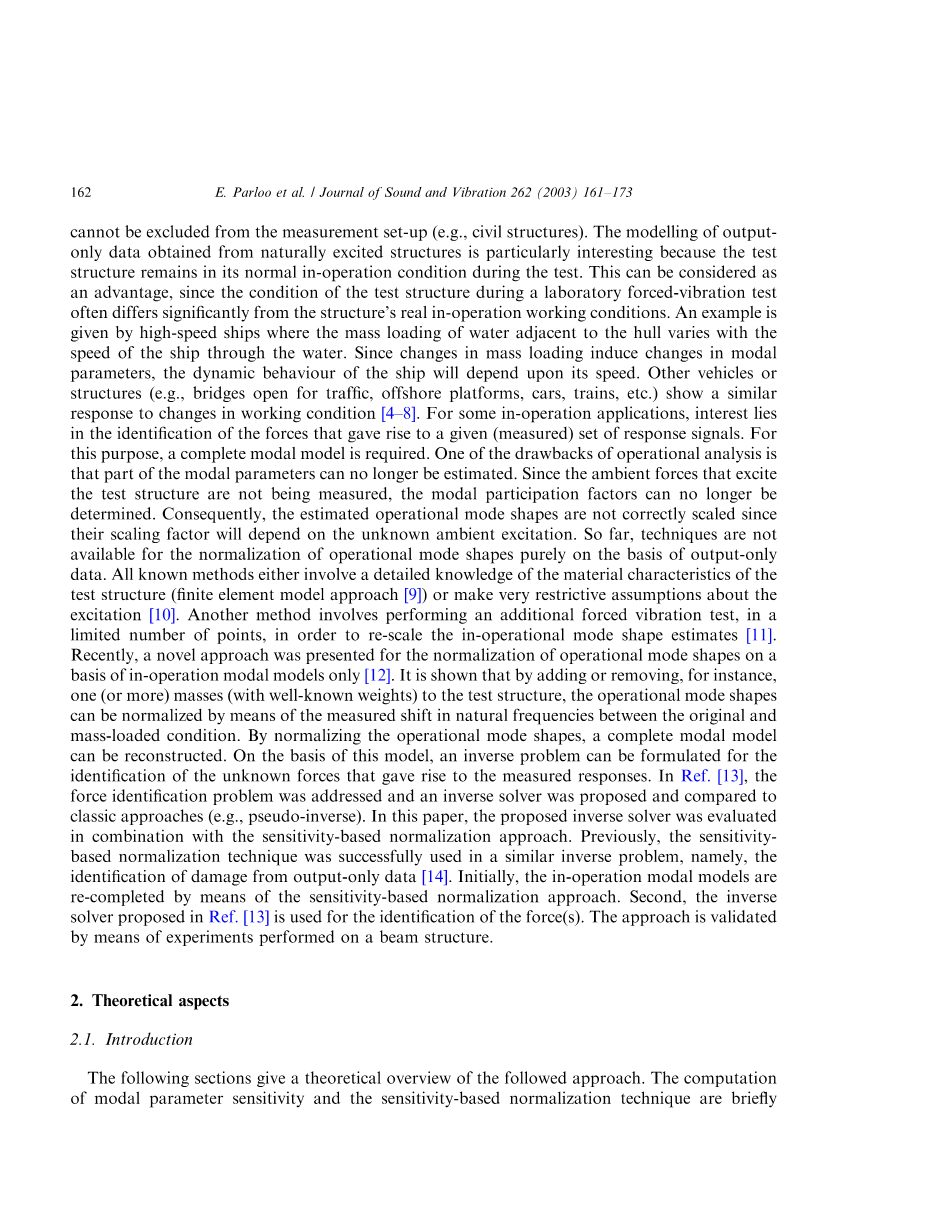 下面的部分给出了接下来的方法的理论概述。第2.2节和第2.3节简要讨论了模态参数灵敏度的计算和基于灵敏度的归一化技术。在第2.4节中对完全模态模型的力进行了识别。