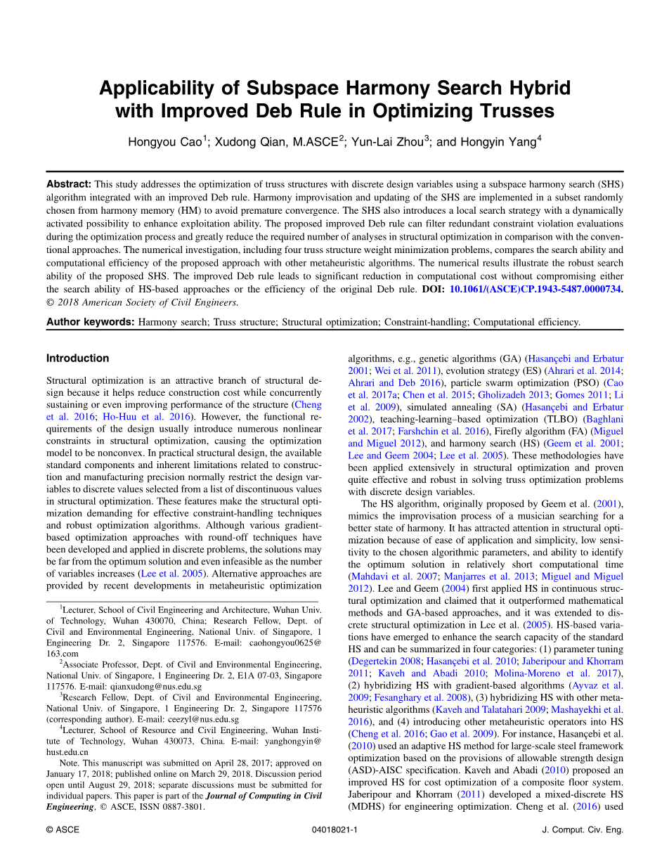 改进DEB规则的子空间和声搜索混合算法在桁架优化中的适用性外文翻译资料