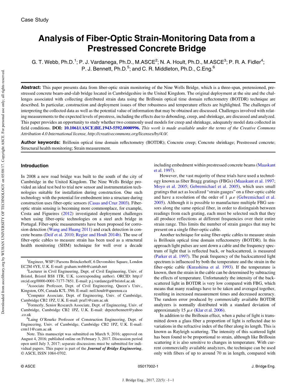 G. T. Webb, Ph.D.1; P. J. Vardanega, Ph.D., M.ASCE2; N. A. Hoult, Ph.D., M.ASCE3; P. R. A. Fidler4;P. J. Bennett, Ph.D.5; and C. R. Middleton, Ph.D., C.Eng.6