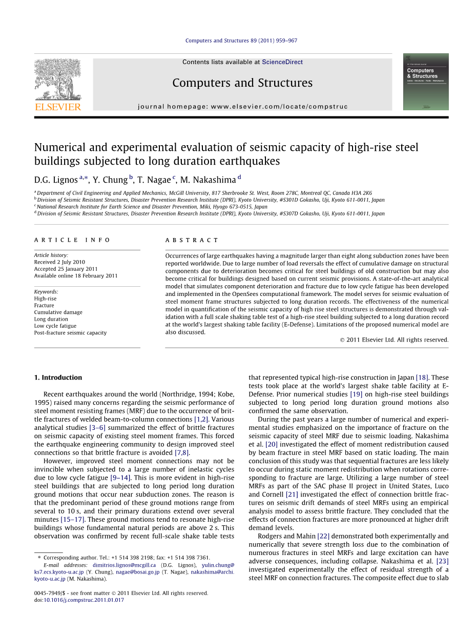 作者:D.G. Lignos a, Y. Chung b, T. Nagae c, M. Nakashima d