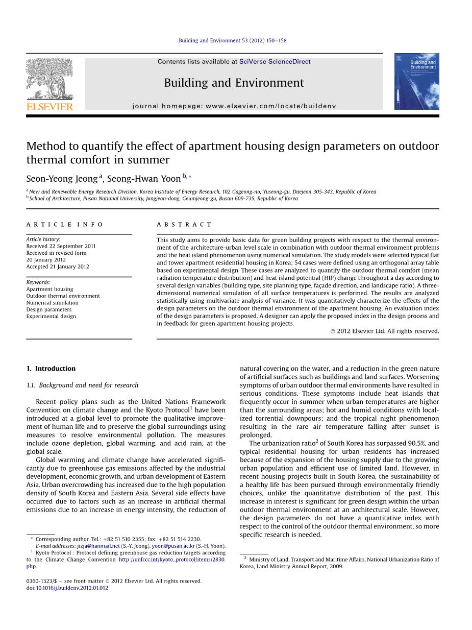 韩国的城市化率超过了90.5%,由于城市人口的增长和有限土地的有效利用,住房供应的扩大使得典型的城市居民住房有所增加。 然而,最近在韩国建立的住房项目中,健康生活的可持续性一直是通过环保选择来实现的,与过去的定量分配不同。对建筑规模的城市户外热环境中的绿色设计而言,这种兴趣的增加是重要的。然而,对于室外热环境的控制,设计参数没有定量指标,因此需要更具体的研究。