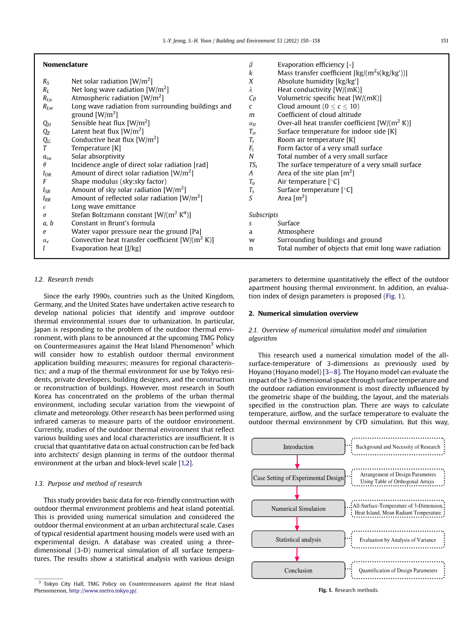 本研究为室外热环境问题和热岛潜力的环境友好施工提供基础数据。这是通过数值模拟提供的,并考虑了城市建筑规模下的室外热环境。典型的住宅公寓住宅模型的案例被用于实验设计。使用所有表面温度的三维(3-D)数值模拟创建数据库。结果显示了具有各种设计参数的统计分析以定量确定户外公寓房屋热环境的影响。此外,还提出了设计参数的评估指标(图1)。