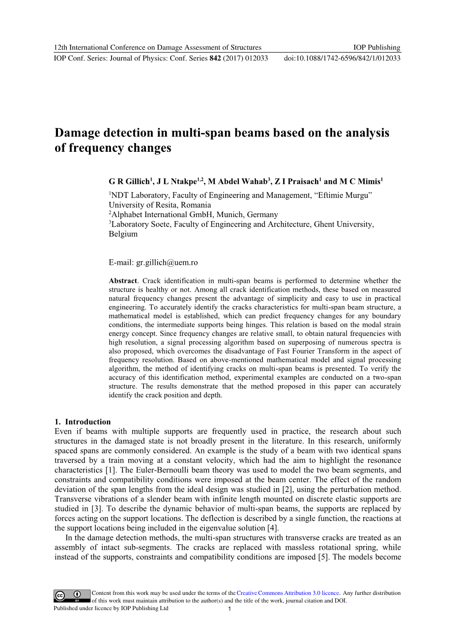 引用此篇文章: G R Gillich et al 2017 J. 物理: 会议. Ser. 842 012033