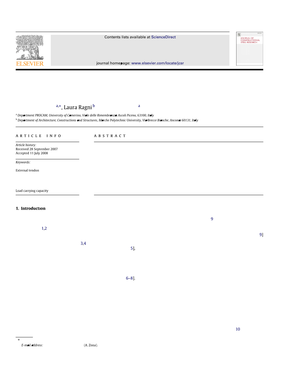 自20世纪50年代后期以来,外部预应力钢 - 混凝土组合构件已用于建筑和桥梁施工[1,2]。 此外,外部后张法已广泛应用于现有桥梁,以加固受损结构或当结构遭受超过设计大小的荷载时提升其极限承载能力[3,4]。钢 - 混凝土组合梁的外部预应力具有许多优点[5],例如:性能的弹性范围的扩大,极限承载能力的提高,疲劳性能的改善,挠度的限制,连续梁的拱形区域中混凝土板开裂的控制,结构重量的减小所带来的对建筑经济和美学价值的益处。 外部预应力梁的分析涉及一些具体问题[6–8]。与传统的粘结预应力不同的是,在鞍点滑移的外筋的应力不能通过局部截面分析来估算。 此时便需要对整个结构进行非线性分析,以正确评估失效时的预应力筋应力,并因此正确评估梁的抗弯强度。由于这种类型的分析非常复杂,简化的方法对设计过程中的工程师有重要的帮助。