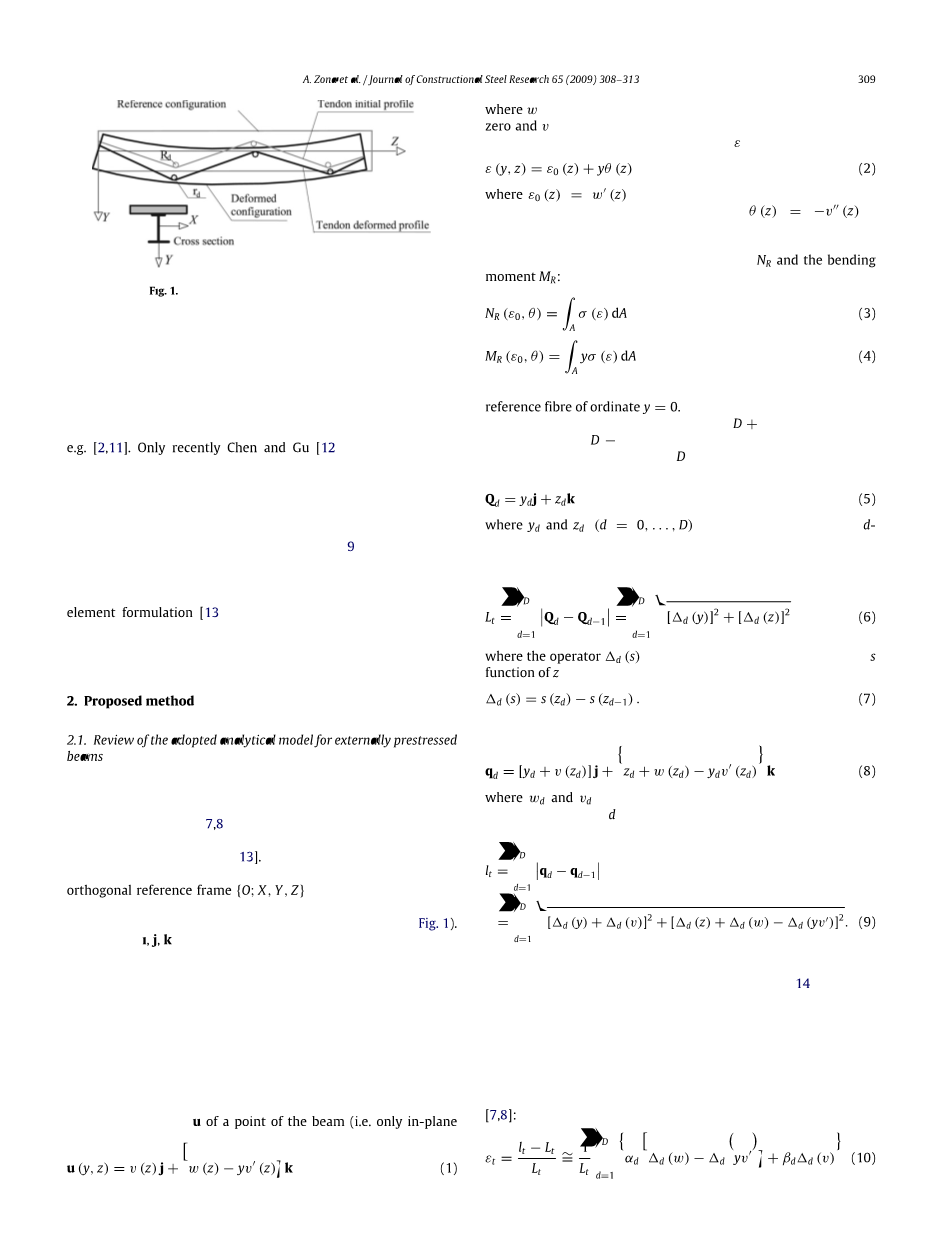 本文所提出的简化方法使用了以前采用的具有滑移筋的外部预应力梁的一般分析模型[7,8]并在本节中简要回顾以方便读者。 该分析模型的有限元公式见于[13].