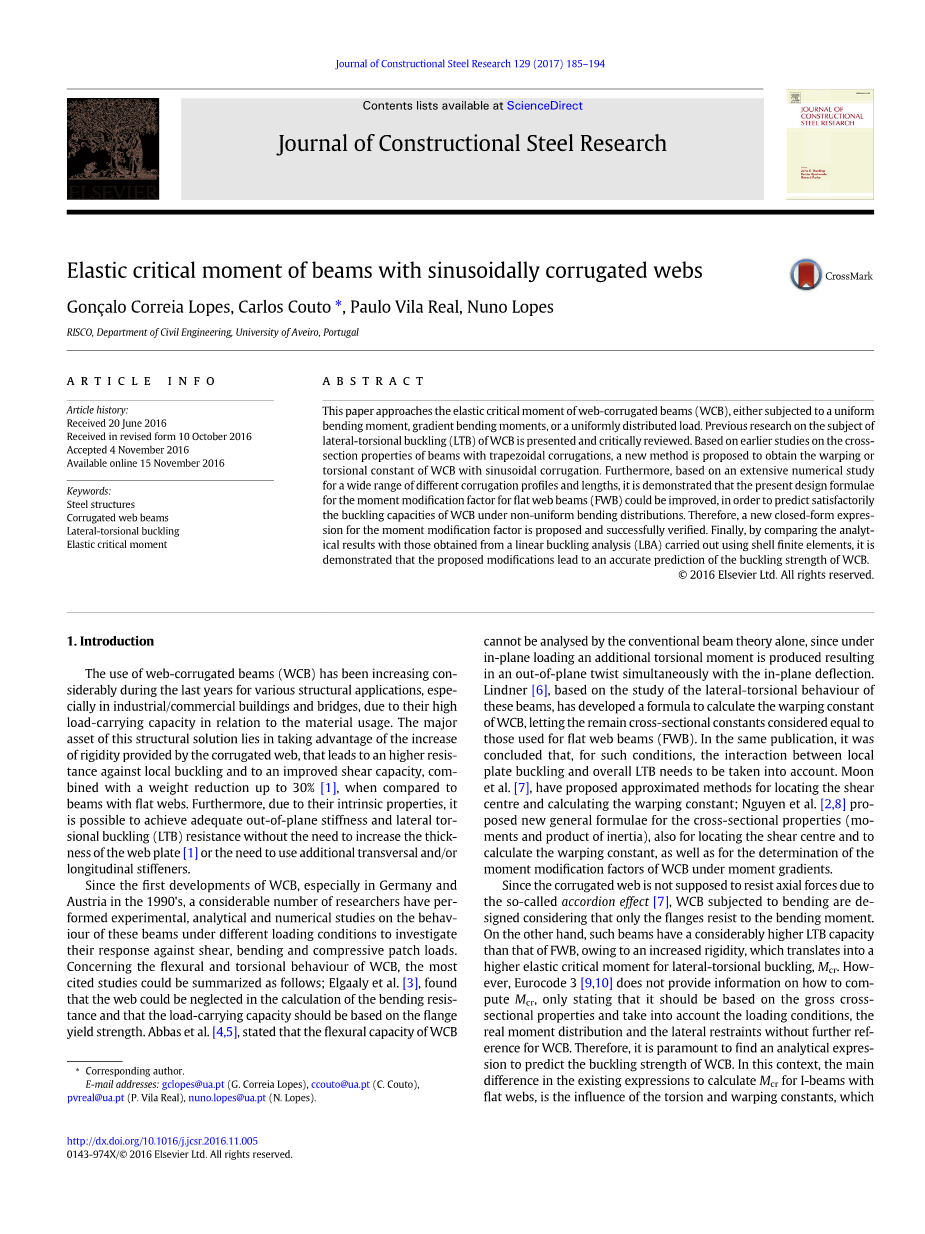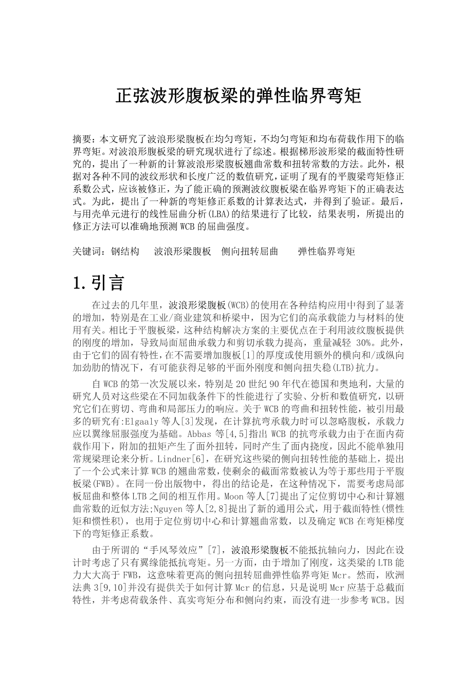 正选波形腹板梁的弹性临界弯矩外文翻译资料 2022-08-03 14:16:09 英语原文共 10 页,剩余内容已隐藏,支付完成后下载完整资料 英语译文共 17 页,剩余内容已隐藏,支付完成后下载完整资料 资料编号:[266102],资料为PDF文档或Word文档,PDF文档可免费转换为Word 原文和译文剩余内容已隐藏,您需要先支付 30元 才能查看原文和译文全部内容!立即支付 发小红书推广免费获取该资料资格。点击链接进入获取推广文案即可: Ai一键组稿 | 降AI率 | 降重复率 | 论文一键排版 PREVIOUS NEXT 您可能感兴趣的文章 在胶合木和不同木材的层压单板木材中平行于颗粒的胶合公制螺纹杆的拉压试验外文翻译资料 拥堵:停车市场定价外文翻译资料 物业税重新考虑外文翻译资料 合同在关系合同中的作用外文翻译资料 基于资源的角度中的SWOT分析外文翻译资料 房地产投资和能源效率:来自中国政策试验的证据外文翻译资料 人口老龄化、流动性和房地产价格:来自中国城市的证据外文翻译资料 地震带MR钢框架的性能标准外文翻译资料 地震工程用复合钢筋混凝土结构体系外文翻译资料 具有能量集中的刚柔混合框架抗震设计外文翻译资料