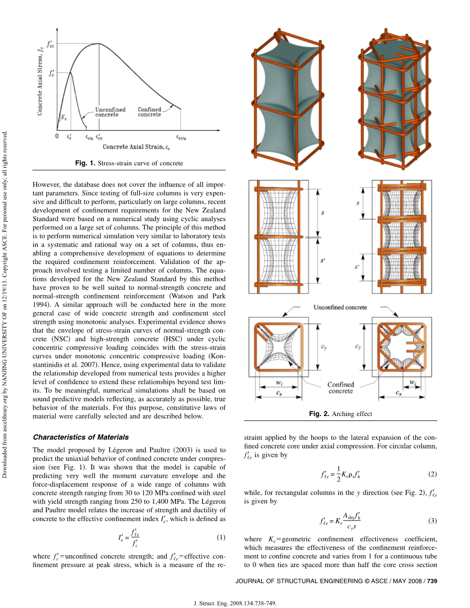 莱热龙和Paultre提出的模型(2003)是用来预测压缩下的单轴约束混凝土的行为(见图1)。结果表明,该模型能够很好地预测目前曲率包络和大量的混凝土强度从30到120 MPa与钢屈服强度从250到1400 MPa的柱子的力-位移响应。莱热龙和保尔特的模型将混凝土强度和延性的增加与有效约束指数Irsquo;e联系起来,定义为: