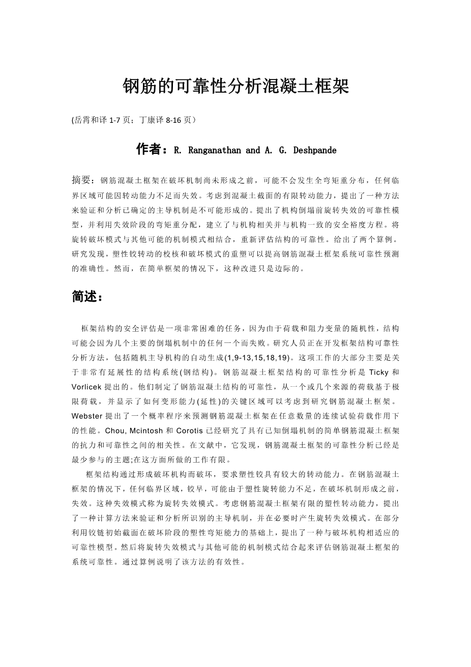 钢筋的可靠性分析混凝土框架外文翻译资料 2022-08-05 10:27:31 英语原文共 14 页,剩余内容已隐藏,支付完成后下载完整资料 英语译文共 16 页,剩余内容已隐藏,支付完成后下载完整资料 资料编号:[262558],资料为PDF文档或Word文档,PDF文档可免费转换为Word 原文和译文剩余内容已隐藏,您需要先支付 30元 才能查看原文和译文全部内容!立即支付 发小红书推广免费获取该资料资格。点击链接进入获取推广文案即可: Ai一键组稿 | 降AI率 | 降重复率 | 论文一键排版 PREVIOUS NEXT 您可能感兴趣的文章 在胶合木和不同木材的层压单板木材中平行于颗粒的胶合公制螺纹杆的拉压试验外文翻译资料 拥堵:停车市场定价外文翻译资料 物业税重新考虑外文翻译资料 合同在关系合同中的作用外文翻译资料 基于资源的角度中的SWOT分析外文翻译资料 房地产投资和能源效率:来自中国政策试验的证据外文翻译资料 人口老龄化、流动性和房地产价格:来自中国城市的证据外文翻译资料 地震带MR钢框架的性能标准外文翻译资料 地震工程用复合钢筋混凝土结构体系外文翻译资料 具有能量集中的刚柔混合框架抗震设计外文翻译资料