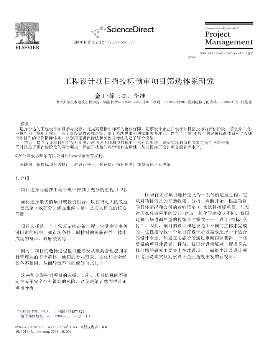 工程设计项目招标预审项目筛选体系研究外文翻译资料 2022-08-05 10:36:26 英语原文共 16 页,剩余内容已隐藏,支付完成后下载完整资料 英语译文共 18 页,剩余内容已隐藏,支付完成后下载完整资料 资料编号:[262521],资料为PDF文档或Word文档,PDF文档可免费转换为Word 原文和译文剩余内容已隐藏,您需要先支付 30元 才能查看原文和译文全部内容!立即支付 发小红书推广免费获取该资料资格。点击链接进入获取推广文案即可: Ai一键组稿 | 降AI率 | 降重复率 | 论文一键排版 PREVIOUS NEXT 您可能感兴趣的文章 在胶合木和不同木材的层压单板木材中平行于颗粒的胶合公制螺纹杆的拉压试验外文翻译资料 拥堵:停车市场定价外文翻译资料 物业税重新考虑外文翻译资料 合同在关系合同中的作用外文翻译资料 基于资源的角度中的SWOT分析外文翻译资料 房地产投资和能源效率:来自中国政策试验的证据外文翻译资料 人口老龄化、流动性和房地产价格:来自中国城市的证据外文翻译资料 地震带MR钢框架的性能标准外文翻译资料 地震工程用复合钢筋混凝土结构体系外文翻译资料 具有能量集中的刚柔混合框架抗震设计外文翻译资料