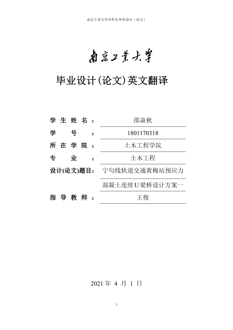 宁句线轨道交通黄梅站 预应力混凝土连续U梁桥设计方案一外文翻译资料 2022-08-05 10:41:29 英语原文共 20 页,剩余内容已隐藏,支付完成后下载完整资料 英语译文共 20 页,剩余内容已隐藏,支付完成后下载完整资料 资料编号:[262473],资料为PDF文档或Word文档,PDF文档可免费转换为Word 原文和译文剩余内容已隐藏,您需要先支付 30元 才能查看原文和译文全部内容!立即支付 发小红书推广免费获取该资料资格。点击链接进入获取推广文案即可: Ai一键组稿 | 降AI率 | 降重复率 | 论文一键排版 PREVIOUS NEXT 您可能感兴趣的文章 在胶合木和不同木材的层压单板木材中平行于颗粒的胶合公制螺纹杆的拉压试验外文翻译资料 拥堵:停车市场定价外文翻译资料 物业税重新考虑外文翻译资料 合同在关系合同中的作用外文翻译资料 基于资源的角度中的SWOT分析外文翻译资料 房地产投资和能源效率:来自中国政策试验的证据外文翻译资料 人口老龄化、流动性和房地产价格:来自中国城市的证据外文翻译资料 地震带MR钢框架的性能标准外文翻译资料 地震工程用复合钢筋混凝土结构体系外文翻译资料 具有能量集中的刚柔混合框架抗震设计外文翻译资料