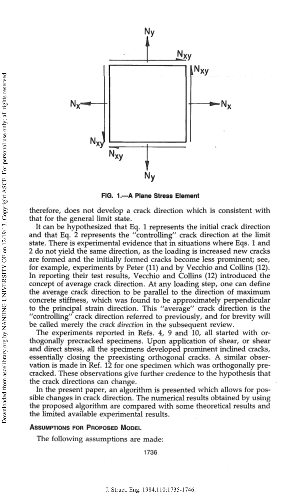 这些与参考文献6的极限分析中隐含的假设相同。假设1和2相当普遍。假设3并不那么普遍,需要进一步审查。 Duchon(5)也做出了这一假设,并且与Vecchio和Collins(12)的实验观察结果一致。