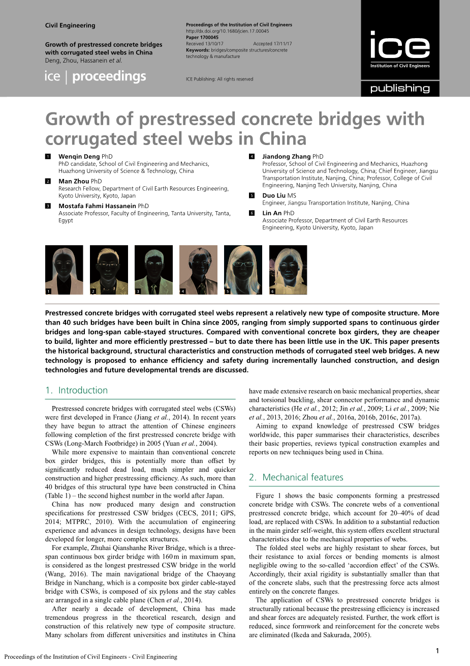本文概述了波形钢腹板预应力混凝土桥梁的特点,介绍了它们的基本性能,回顾了典型的施工实例,并报道了我国目前正在采用的新技术,旨在扩大世界各国对预应力混凝土桥梁的认识。
