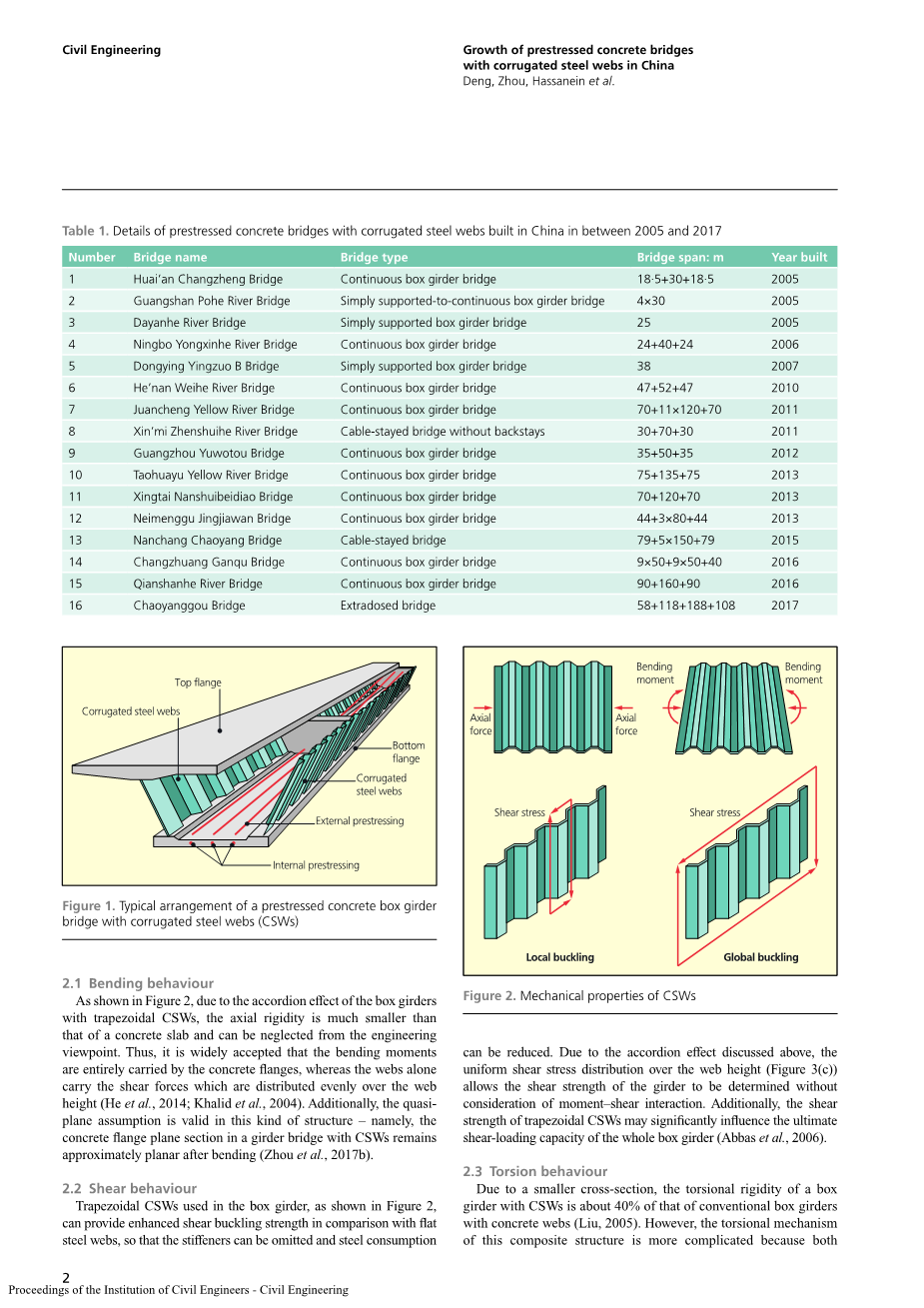 虽然维修比传统的混凝土箱梁桥更昂贵,但这可能会被大幅减少的自重、更简单、更快速的施工以及更高的预应力效率所抵消。因此,中国已经建造了40多座这种结构类型的桥梁(表1) ,这是仅次于日本的世界第二高的桥梁数量。