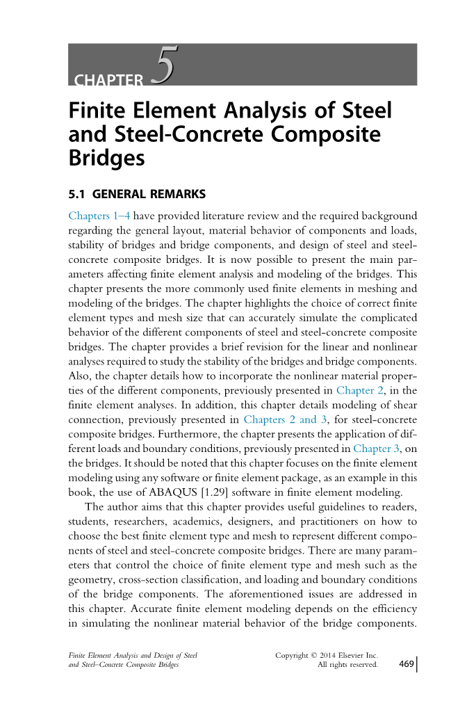 钢-混凝土组合桥梁可以通过分析来评估温度引起的热应力。由于全年温度的变化,特别是在高温地区,钢-混凝土组合桥梁会产生热应力,导致桥梁截面产生附加的膜应力和弯曲应力,以及纵向和横向的热膨胀。ABAQUS[1.29]提供了三种处理不同截面温度效应的主要分析方法,即非耦合传热分析、顺序耦合热应力分析和完全耦合热应力分析。非耦合传热分析涉及传导、强制对流和边界辐射的传热问题,在ABAQUS(标准)中进行分析。在这些分析中,温度场的计算没有考虑结构的应力/变形状态。纯传热问题可以是瞬态或稳态的,也可以是线性或非线性的。如果应力/位移解依赖于温度场,则可以在ABAQUS(标准)中进行顺序耦合热应力分析,但不存在反向依赖关系。通过先解决纯传热问题,然后将温度解作为预先设定的场读入应力分析,进而进行热应力分析。在应力分析中,温度随时间和位置的变化而变化,而应力分析解不会改变温度。在传热分析模型和热应力分析模型之间存在不同的网格。温度值将根据在热应力模型节点处评估的单元内插器进行内插。最后,在全耦合热应力分析中,采用耦合温度-位移法同时求解应力/位移和温度场。当热解和力学解强烈相互影响时,采用耦合分析。ABAQUS (标准)和ABAQUS (显式)都提供了耦合温度-位移分析程序,但是每个程序使用的算法有很大的不同。在ABAQUS(标准)中