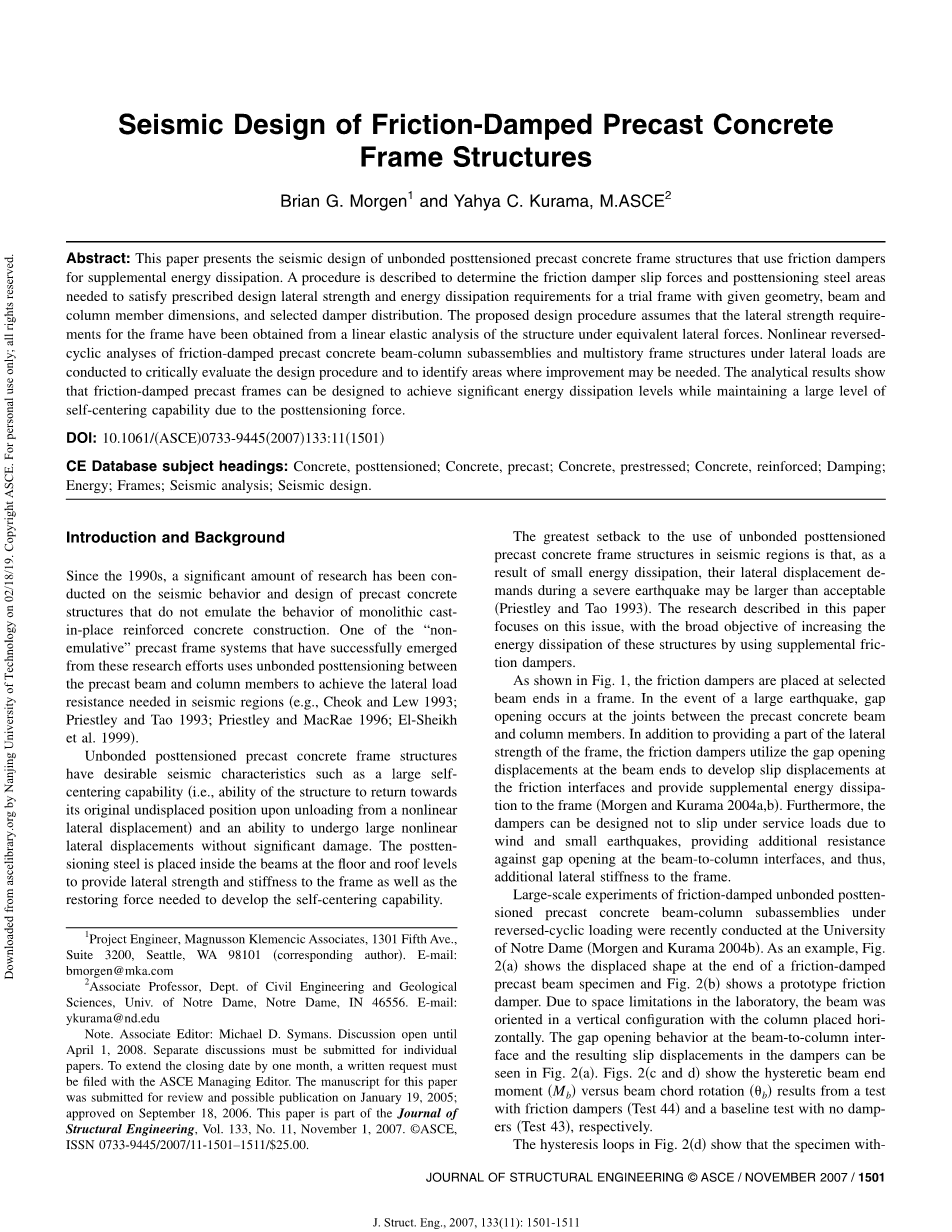 Brian G. Morgenand Yahya C. Kurama, m.a asce1 2