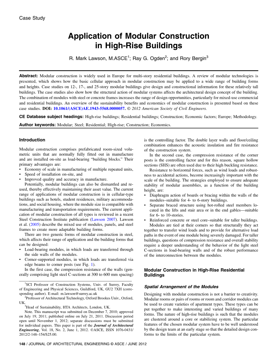 在欧洲,模块化建筑被广泛用于多层住宅建筑。对模块化技术的综述显示了模块化系统中的基本蜂窝模式如何应用于各种建筑形式和高度。对12层,17层和25层模块化建筑的案例研究提供了这些相对较高的建筑的设计和构造信息。案例研究还显示了模块化系统的结构形式如何影响建筑物的建筑设计概念。模块化与钢结构或混凝土框架的结合拓宽了设计的范围,特别是对于混合用途的商业和住宅建筑。基于这些案例研究,对模块化建筑的持续性收益和经济性进行了概述。
