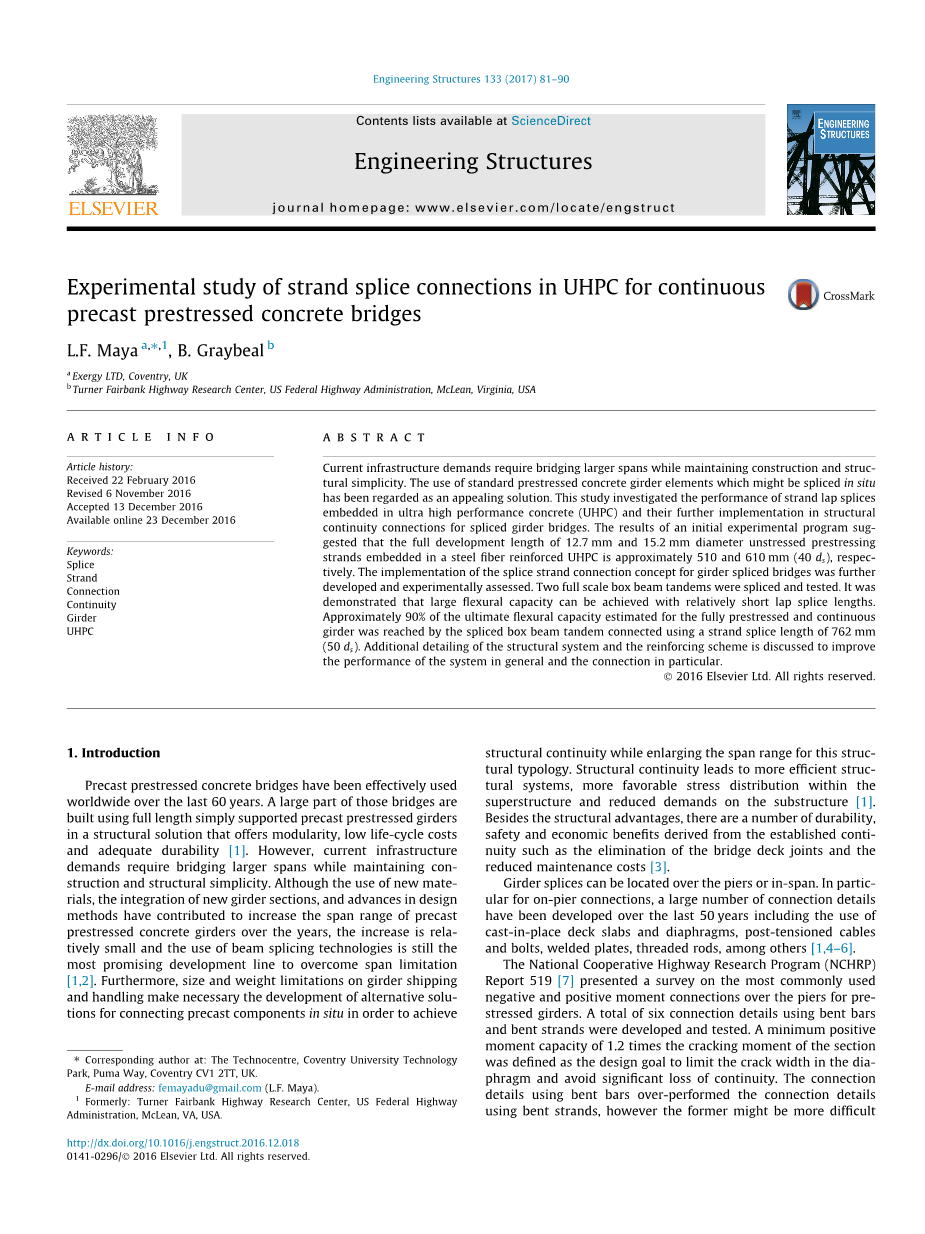 L.F. Maya, B. Graybeal /工程结构133 (2017)81-90 83