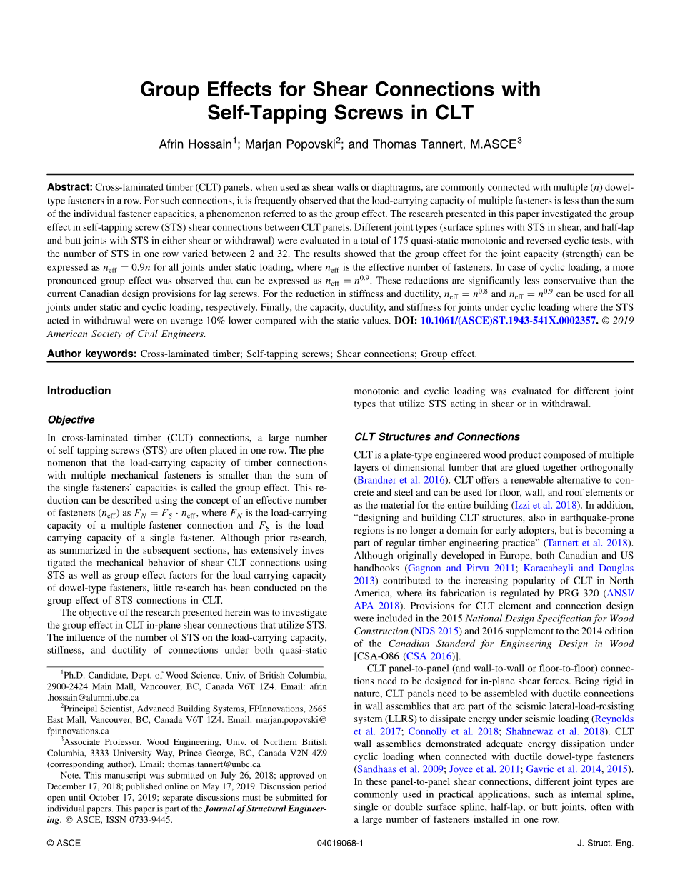 Afrin Hossai;1Marjan Popovski;2Thomas Tannert,M.ASCE3