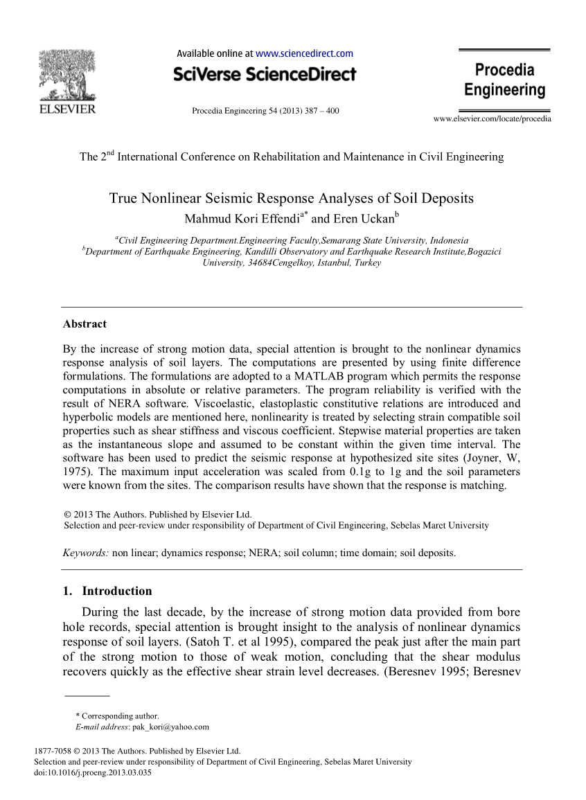 沉积土的真实非线性地震反应分析第二届国际土木工程复原与维护会议