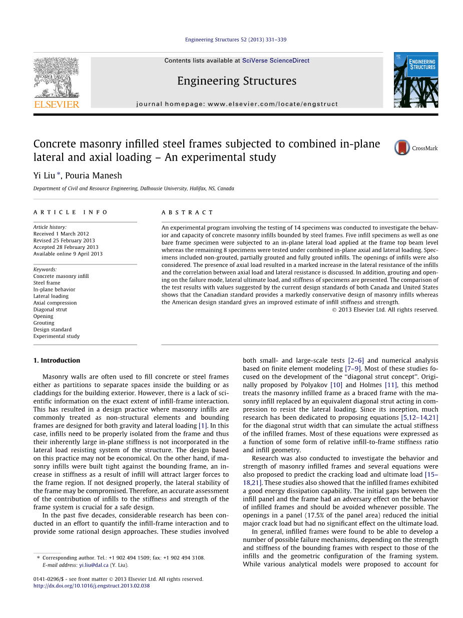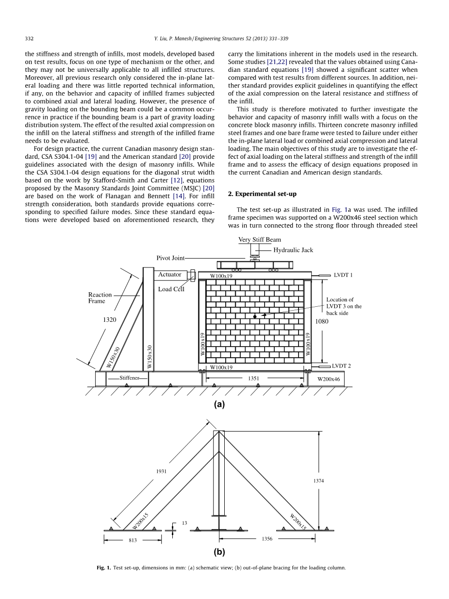 对于设计实践,目前的加拿大砖石设计标准CSA S304.1-04 [19]和美国标准[20]提供了与砌体填充设计相关的指导。虽然CSA S304.1-04基于Stafford-Smith和Carter [12]的工作对角支撑宽度的设计方程,由砌体标准联合委员会(MSJC)提出的方程[20]基于Flanagan 和Bennett [14]的工作。对于填充强度考虑,两种标准都提供了对应于指定故障模式的方程式。由于这些标准方程是基于上述研究开发的,因此它们具有研究中使用的模型所固有的局限性。一些研究[21,22]表明,与不同来源的测试结果相比,使用加拿大标准方程[19]获得的值显示出显着的分散。此外,两个标准都没有提供明确的准则来量化轴向压缩对填充物的横向阻力和刚度的影响。