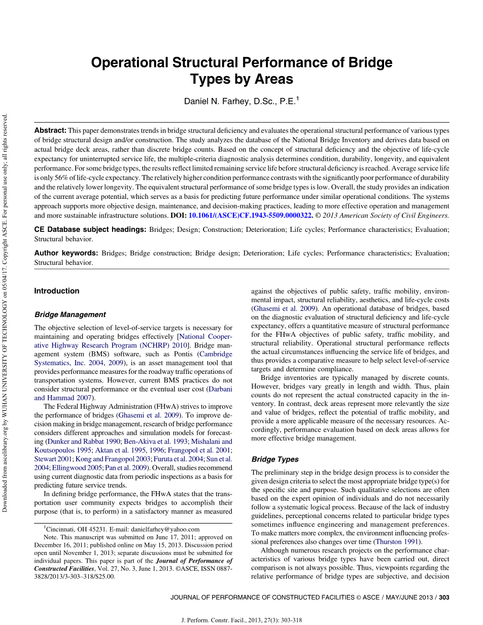 CE数据库主题标题:桥梁;设计;施工恶化;生命周期;性能特点;评价;结构行为。