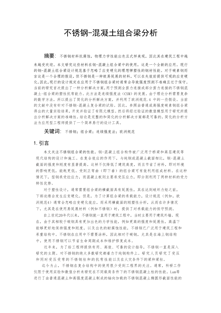 不锈钢-混凝士组合梁分析外文翻译资料 2023-01-20 10:10:37 英语原文共 11 页,剩余内容已隐藏,支付完成后下载完整资料 英语译文共 7 页,剩余内容已隐藏,支付完成后下载完整资料 资料编号:[254589],资料为PDF文档或Word文档,PDF文档可免费转换为Word 原文和译文剩余内容已隐藏,您需要先支付 30元 才能查看原文和译文全部内容!立即支付 发小红书推广免费获取该资料资格。点击链接进入获取推广文案即可: Ai一键组稿 | 降AI率 | 降重复率 | 论文一键排版 PREVIOUS NEXT 您可能感兴趣的文章 在胶合木和不同木材的层压单板木材中平行于颗粒的胶合公制螺纹杆的拉压试验外文翻译资料 拥堵:停车市场定价外文翻译资料 物业税重新考虑外文翻译资料 合同在关系合同中的作用外文翻译资料 基于资源的角度中的SWOT分析外文翻译资料 房地产投资和能源效率:来自中国政策试验的证据外文翻译资料 人口老龄化、流动性和房地产价格:来自中国城市的证据外文翻译资料 地震带MR钢框架的性能标准外文翻译资料 地震工程用复合钢筋混凝土结构体系外文翻译资料 具有能量集中的刚柔混合框架抗震设计外文翻译资料