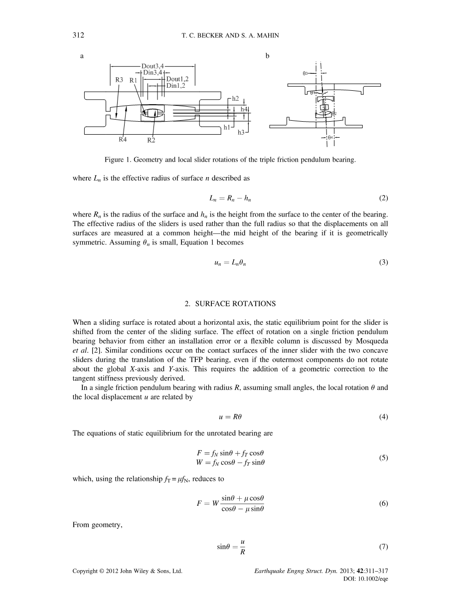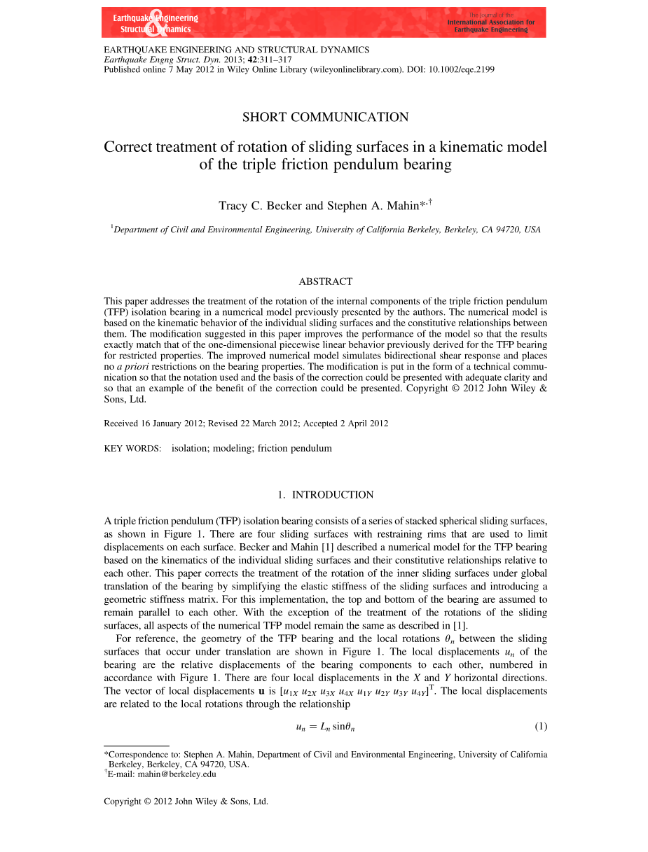 三摩擦摆轴承运动学模型中滑动面旋转的正确处理外文翻译资料