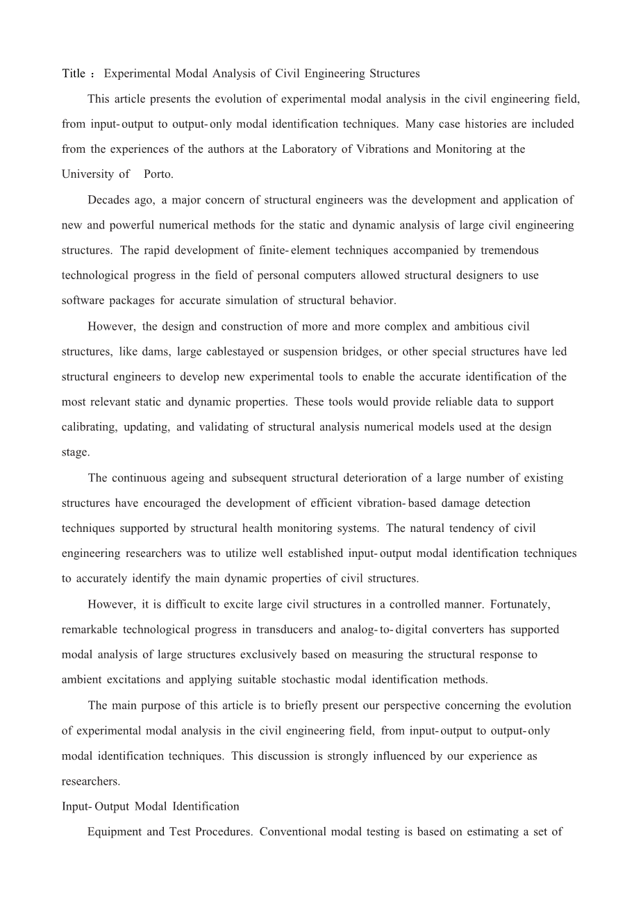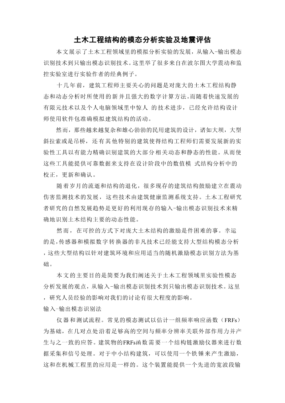 土木工程结构的模态分析实验及地震评估外文翻译资料