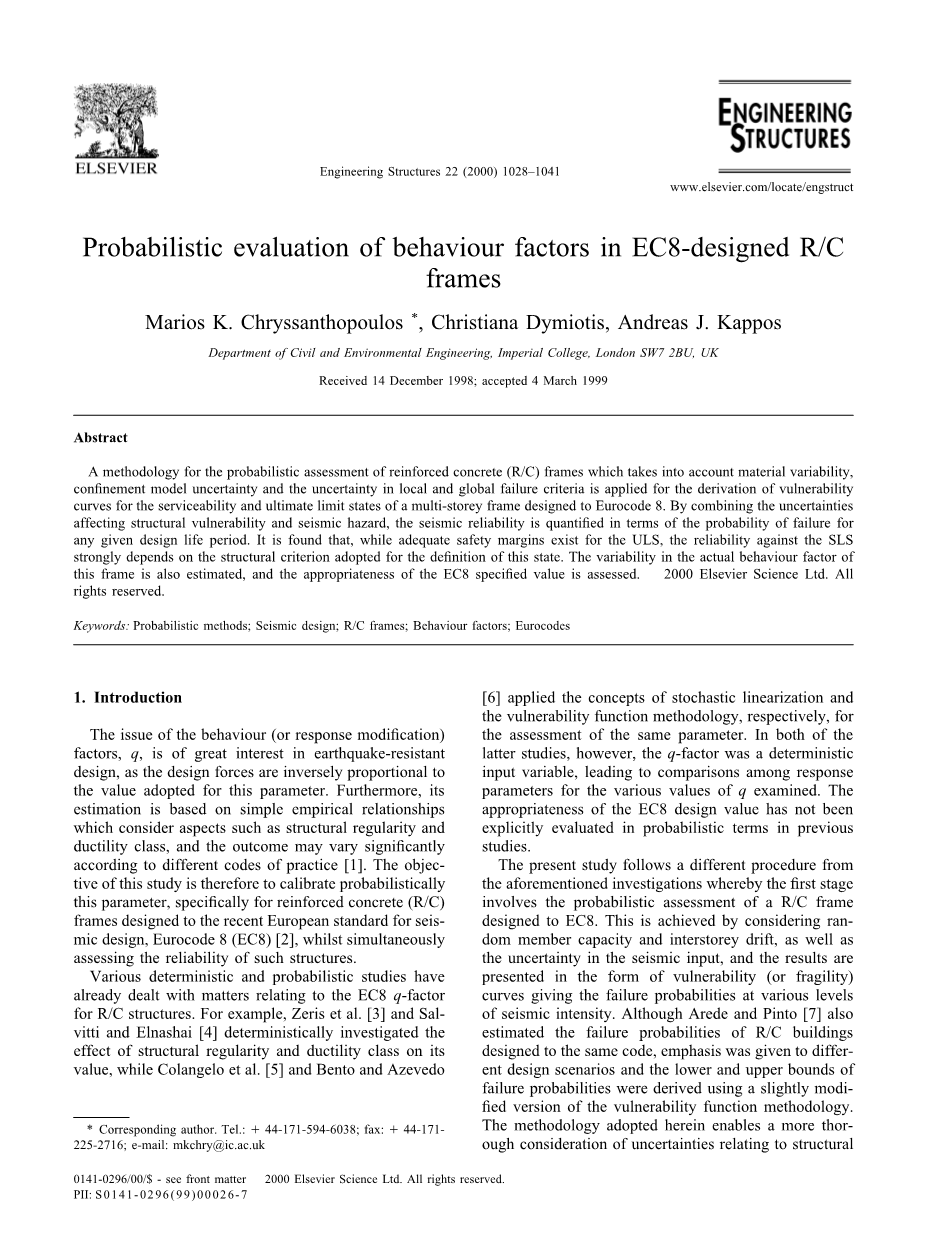 关键词:概率方法;抗震设计;遥控车架;行为因素;欧洲规范