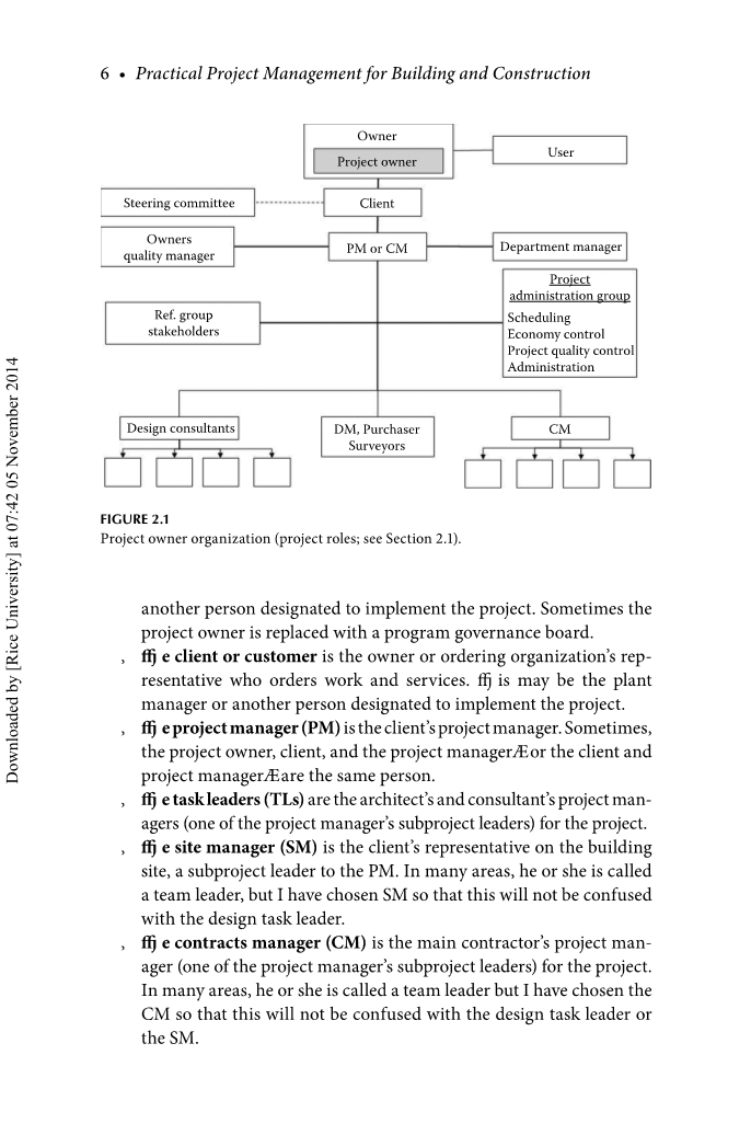 2.1 项目当我谈到项目经理、次级项目经理、承包商、顾问、客户和客户时,我试图使用以下术语来促进对文本的理解(组织结构图如-2.3 所示): 图2.1
