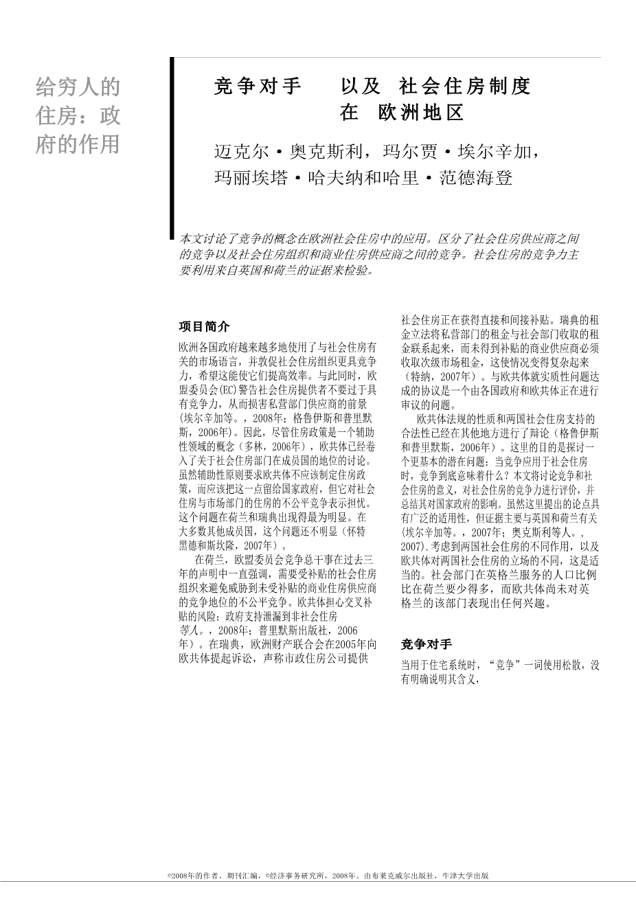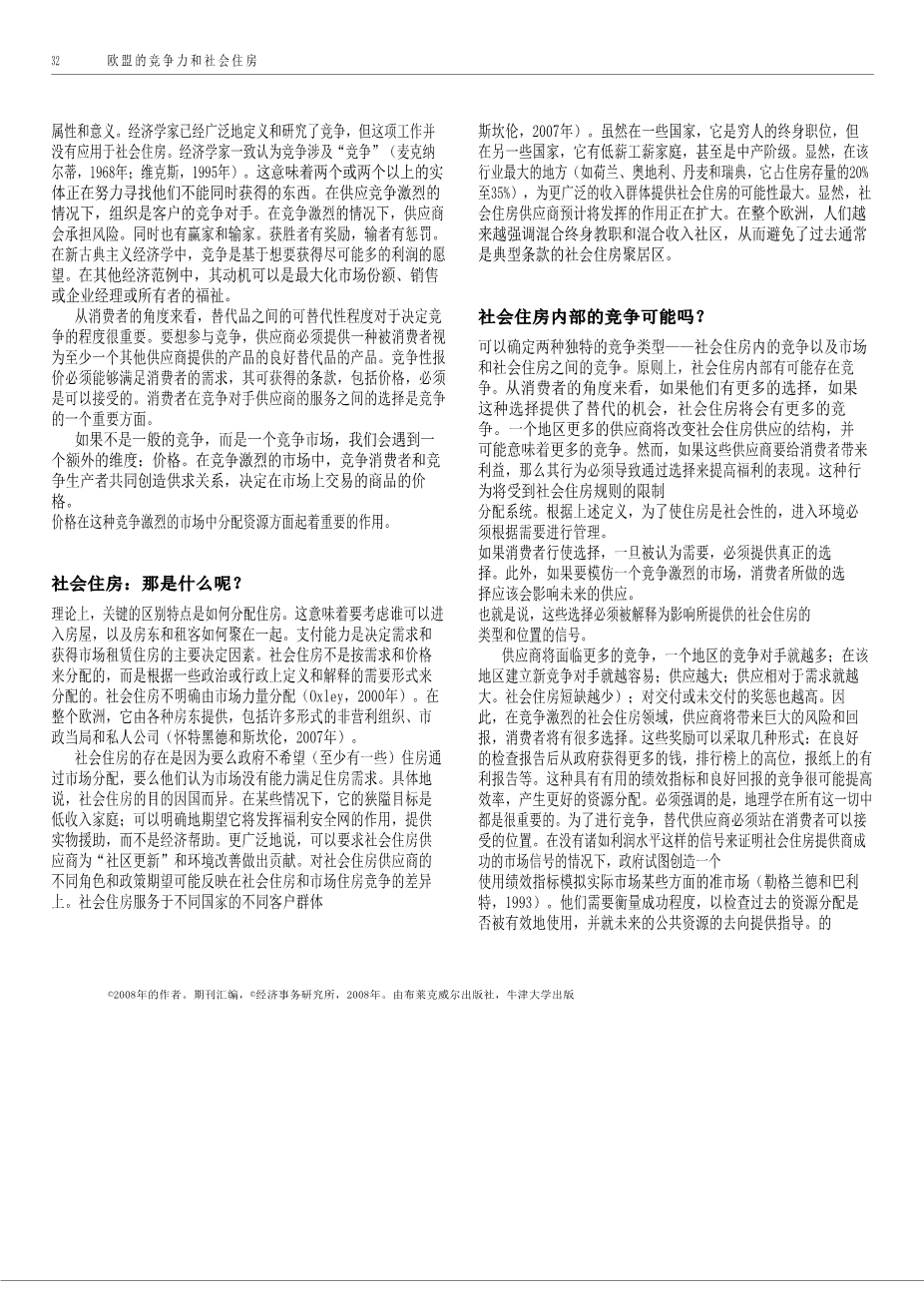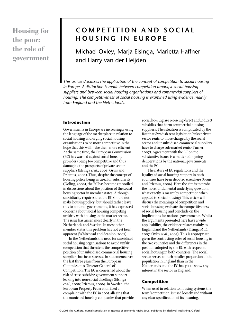 欧洲的竞争和社会住房外文翻译资料