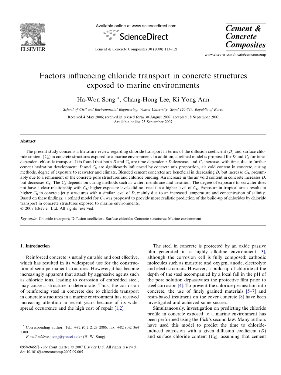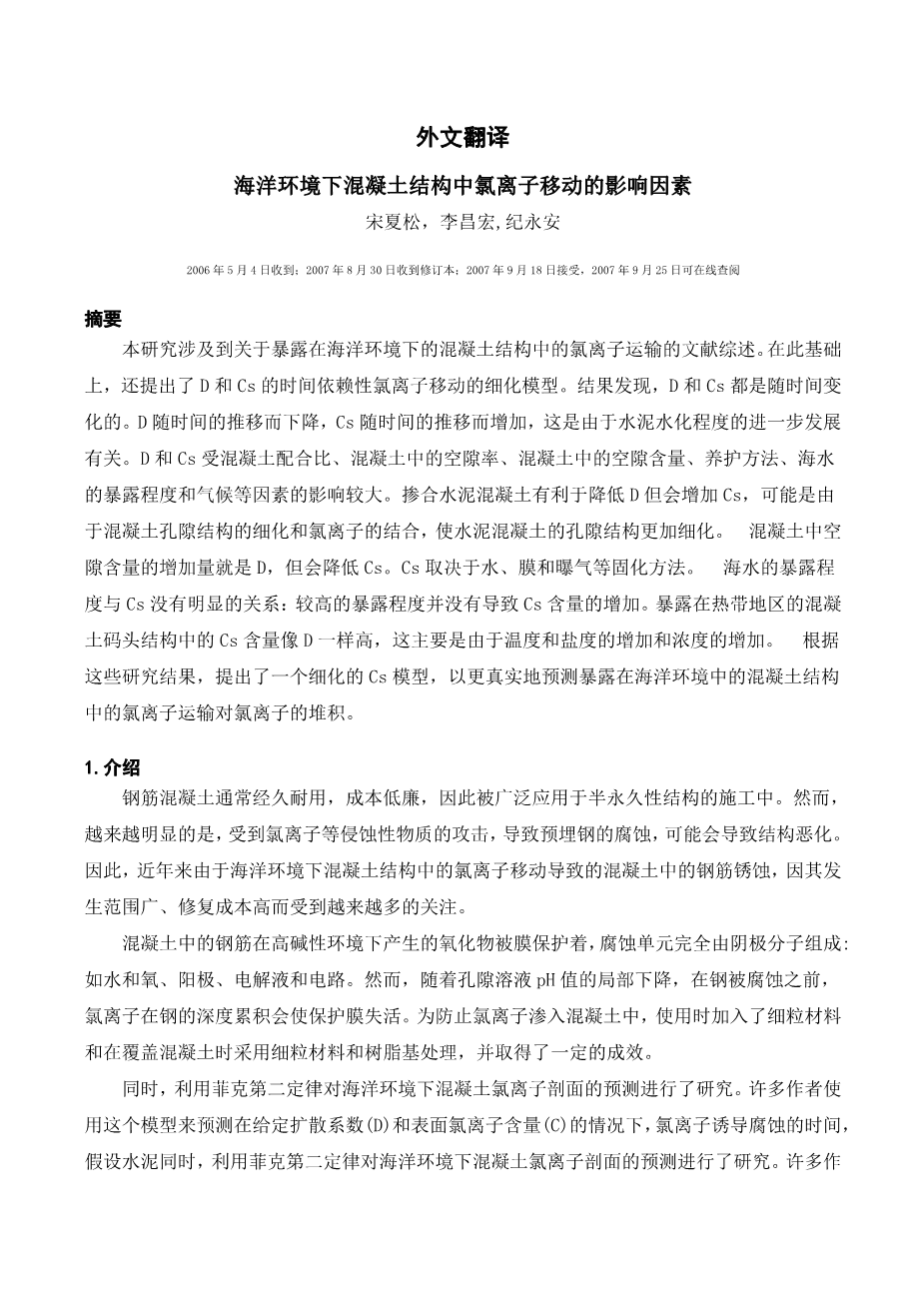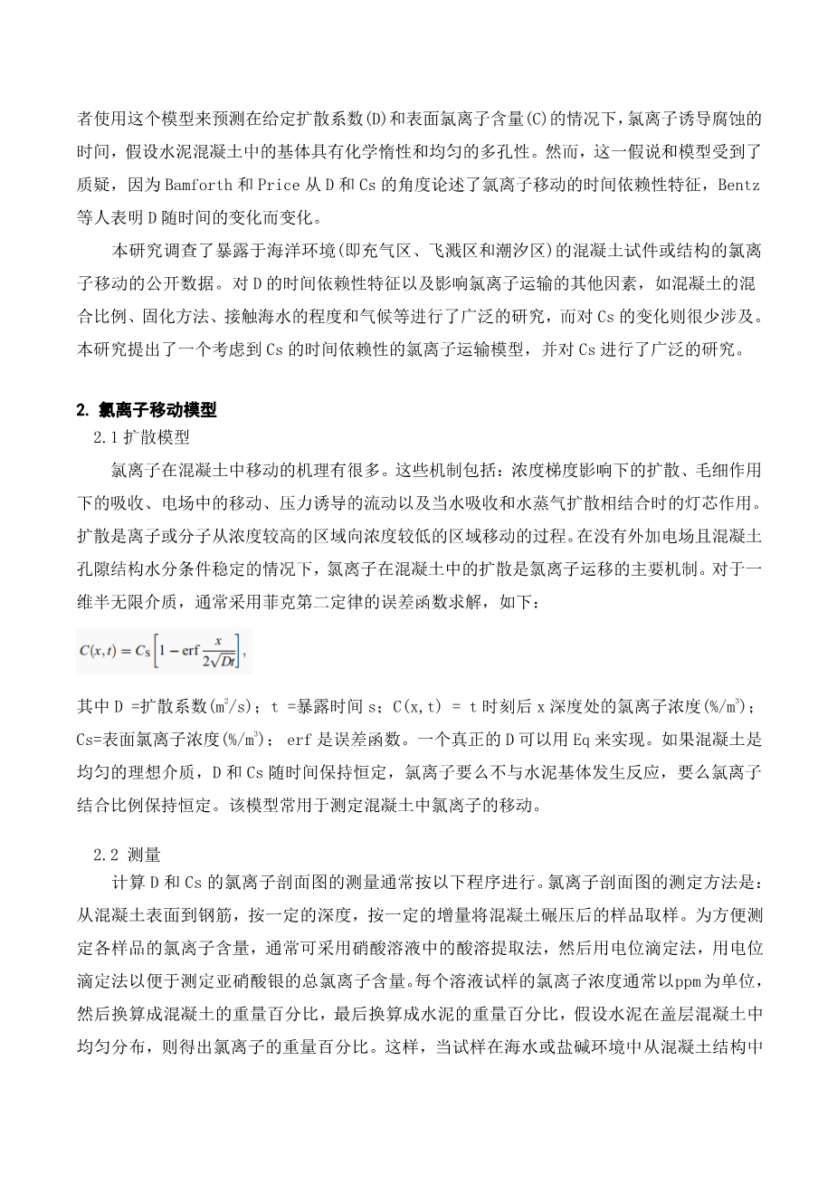 海洋环境下混凝土结构中氯离子移动的影响因素外文翻译资料