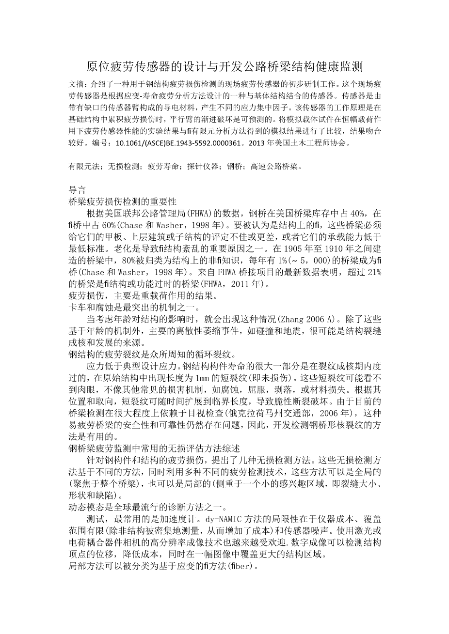 原位疲劳传感器的设计与开发公路桥梁结构健康监测外文翻译资料 2023-08-24 17:19:18 英语原文共 11 页,剩余内容已隐藏,支付完成后下载完整资料 英语译文共 15 页,剩余内容已隐藏,支付完成后下载完整资料 资料编号:[608174],资料为PDF文档或Word文档,PDF文档可免费转换为Word 原文和译文剩余内容已隐藏,您需要先支付 30元 才能查看原文和译文全部内容!立即支付 发小红书推广免费获取该资料资格。点击链接进入获取推广文案即可: Ai一键组稿 | 降AI率 | 降重复率 | 论文一键排版 PREVIOUS NEXT 您可能感兴趣的文章 在胶合木和不同木材的层压单板木材中平行于颗粒的胶合公制螺纹杆的拉压试验外文翻译资料 拥堵:停车市场定价外文翻译资料 物业税重新考虑外文翻译资料 合同在关系合同中的作用外文翻译资料 基于资源的角度中的SWOT分析外文翻译资料 房地产投资和能源效率:来自中国政策试验的证据外文翻译资料 人口老龄化、流动性和房地产价格:来自中国城市的证据外文翻译资料 地震带MR钢框架的性能标准外文翻译资料 地震工程用复合钢筋混凝土结构体系外文翻译资料 具有能量集中的刚柔混合框架抗震设计外文翻译资料