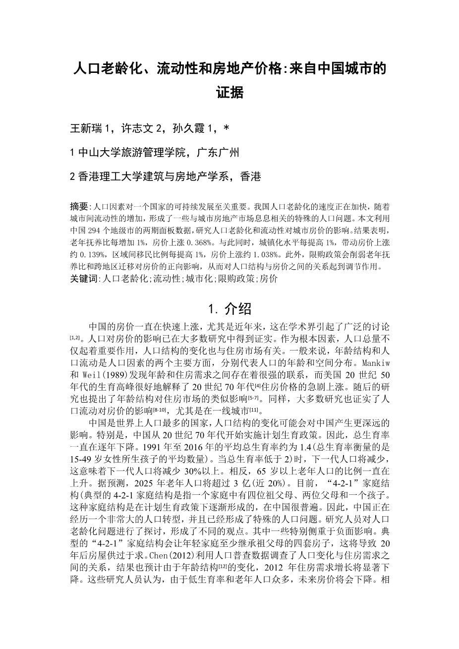 人口老龄化、流动性和房地产价格:来自中国城市的证据外文翻译资料 2023-09-13 09:22:27 英语原文共 15 页,剩余内容已隐藏,支付完成后下载完整资料 英语译文共 8 页,剩余内容已隐藏,支付完成后下载完整资料 资料编号:[609995],资料为PDF文档或Word文档,PDF文档可免费转换为Word 原文和译文剩余内容已隐藏,您需要先支付 30元 才能查看原文和译文全部内容!立即支付 发小红书推广免费获取该资料资格。点击链接进入获取推广文案即可: Ai一键组稿 | 降AI率 | 降重复率 | 论文一键排版 PREVIOUS NEXT 您可能感兴趣的文章 在胶合木和不同木材的层压单板木材中平行于颗粒的胶合公制螺纹杆的拉压试验外文翻译资料 拥堵:停车市场定价外文翻译资料 物业税重新考虑外文翻译资料 合同在关系合同中的作用外文翻译资料 基于资源的角度中的SWOT分析外文翻译资料 房地产投资和能源效率:来自中国政策试验的证据外文翻译资料 人口老龄化、流动性和房地产价格:来自中国城市的证据外文翻译资料 地震带MR钢框架的性能标准外文翻译资料 地震工程用复合钢筋混凝土结构体系外文翻译资料 具有能量集中的刚柔混合框架抗震设计外文翻译资料