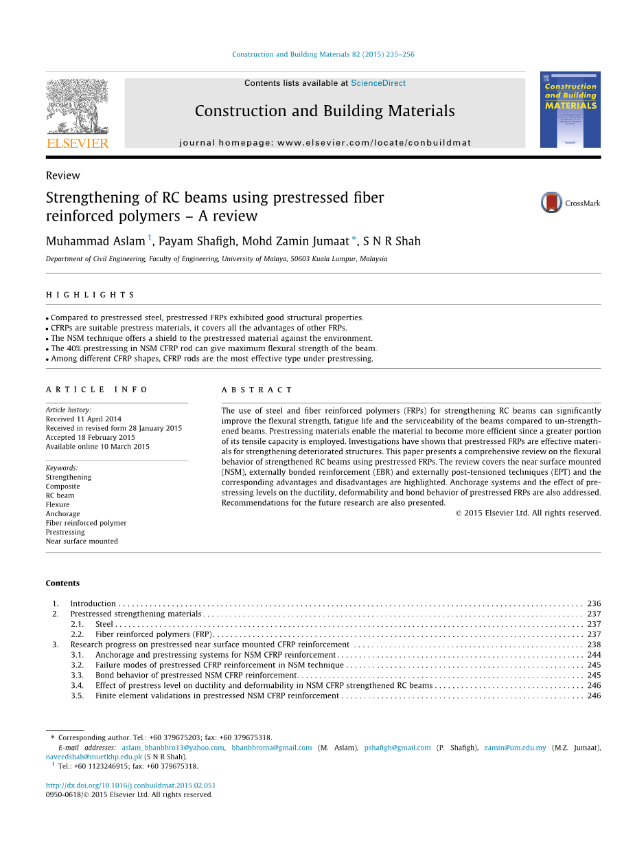 用预应力纤维增强聚合物加固钢筋混凝土梁-综述