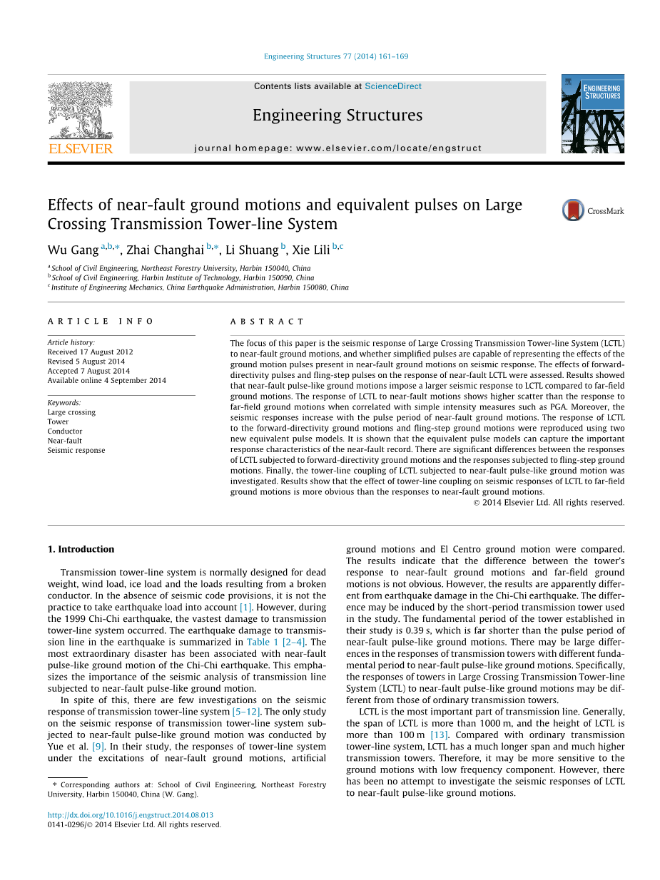 LCTL是输电线路中最重要的部分。一般来说,LCTL的跨度超过1000米,LCTL的高度超过100米[13]。与普通输电塔线系统相比,LCTL具有更长的跨度和更高的输电塔。因此,它可能对具有低频分量的地面运动更敏感。然而,没有尝试研究LCTL对近断层脉冲状地震动的地震响应。