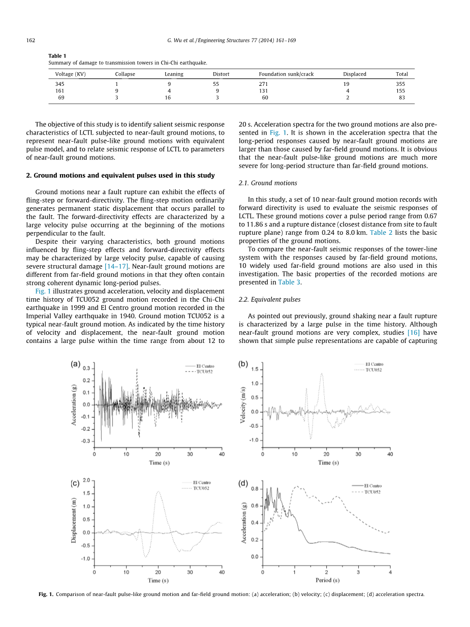 尽管如此,对输电塔线系统的地震响应的研究很少[5-12]。Yue等人进行了唯一一项关于传输塔线系统地震响应的研究,该系统受到近断层脉冲状地震动的影响。[9]。在他们的研究中,比较了塔线系统在近断层地震动,人工地面运动和El Centro地面运动激励下的响应。 结果表明,塔对近断层地震动的响应与远场地面运动之间的差异并不明显。然而,结果明显不同于Chi-Chi地震中的地震破坏。