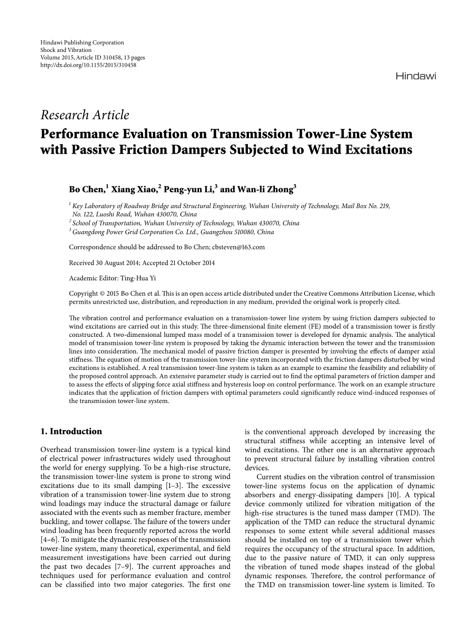 为此,本研究积极开展了受风荷载作用的无源摩擦阻尼传输塔线路系统的振动控制和性能评估。首先建立了输电塔的三维有限元模型,然后建立了相应的二维集总质量模型。通过考虑了铁塔与输电线路之间的动态相互作用,提出了输电塔线路系统的解析模型。通过考虑摩擦阻尼器轴向刚度的影响,给出了摩擦阻尼器的力学模型。建立了考虑风扰动的输电线路系统在平面内和平面外的运动方程。以我国南方实际建成的输电线路系统为例,验证了该控制方法的可行性和可靠性。此外,本文还进行了详细的参数化研究,以考察滑行力、轴向刚度和控制回路对控制精度的影响。观测结果表明,在阻尼器参数被确定的情况下,被动摩擦可以抑制输电塔线路系统的风振控制,因为它具有良好的能量消散能力。