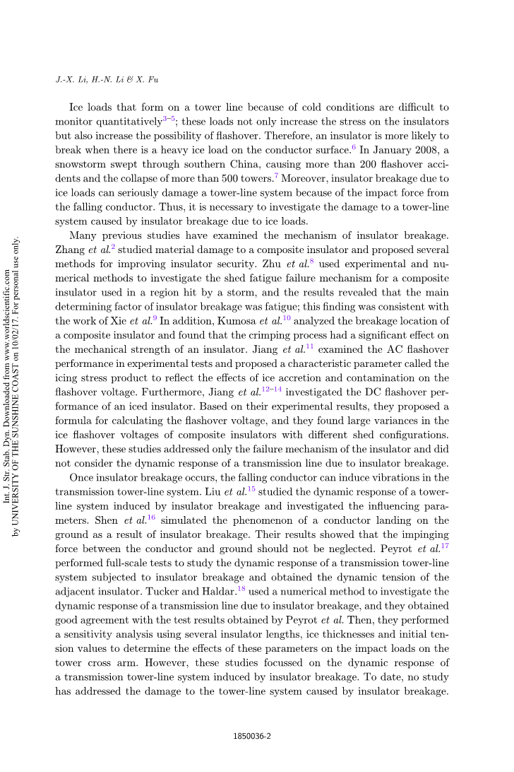 应注意的是,假定绝缘子在给定时间发生断裂,本文的目的是研究由绝缘子断裂引起的塔式系统的动力响应和失效模式。但是,这里不讨论绝缘体破损的机理。