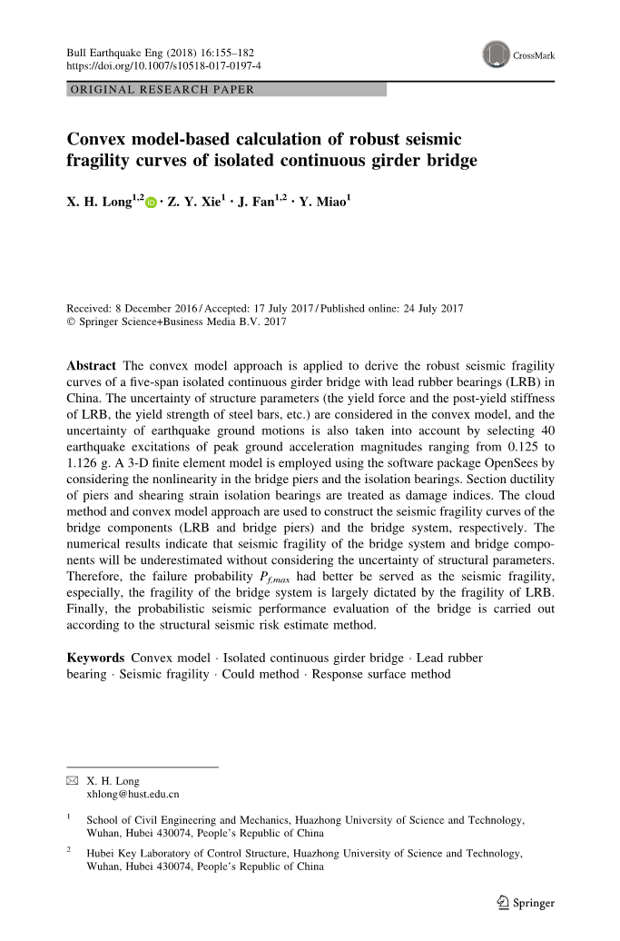 关键词:凸模型·孤立连续梁桥·铅芯橡胶支座·地震脆性·可能性方法·响应面法