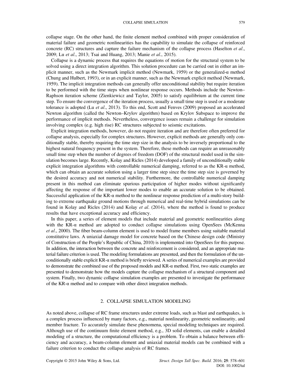 另一方面,有限元方法结合适当考虑材料破坏和几何非线性,能够模拟钢筋混凝土(RC)结构的坍塌并捕获坍塌过程的失效机理(Haselton等,2009; Lu等人,2013; Tsai 和Huang,2013; Manie等人,2015)。