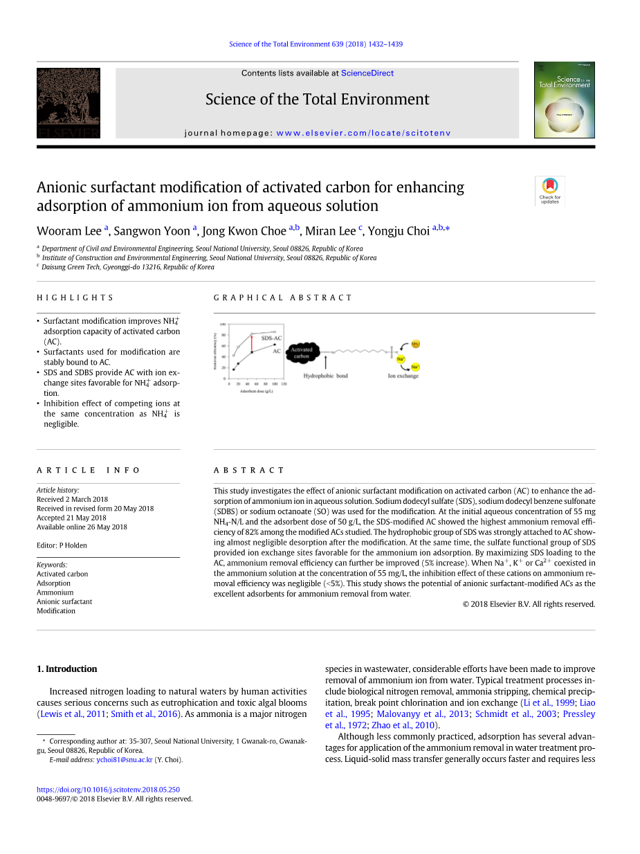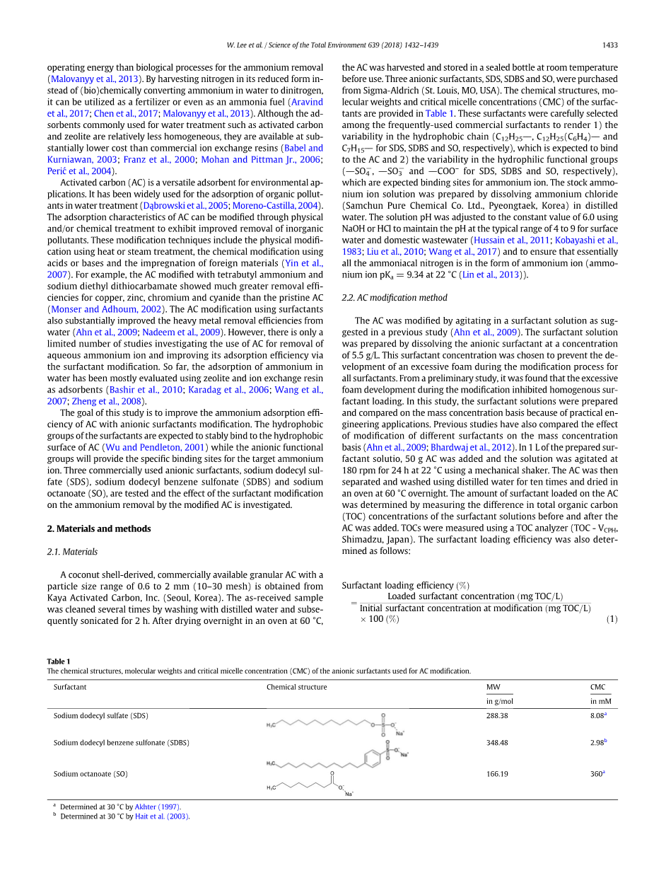 阴离子表面活性剂改性活性炭对提高水中氨氮吸附的作用外文翻译资料