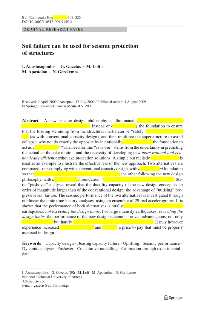 I. Anastasopoulos;G. Gazetas;M. Loli ;M. Apostolou;N. Gerolymos
