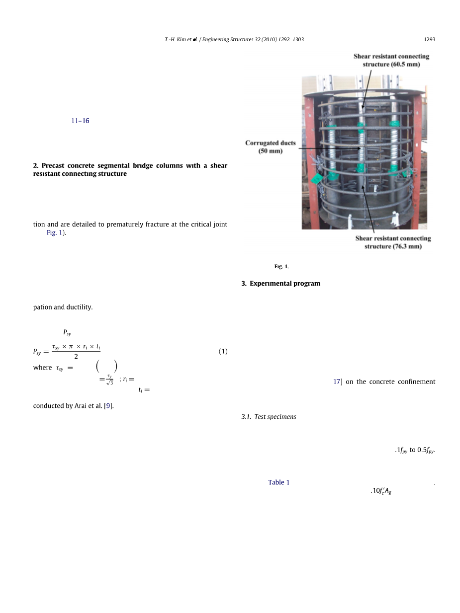 本研究的目的是为中等地震区开发预制节段后张法混凝土柱。节段接缝连续的抗剪连接结构被添加到柱中以补充能量消耗,并被详细描述为在临界接头处过早断裂(见图1)。