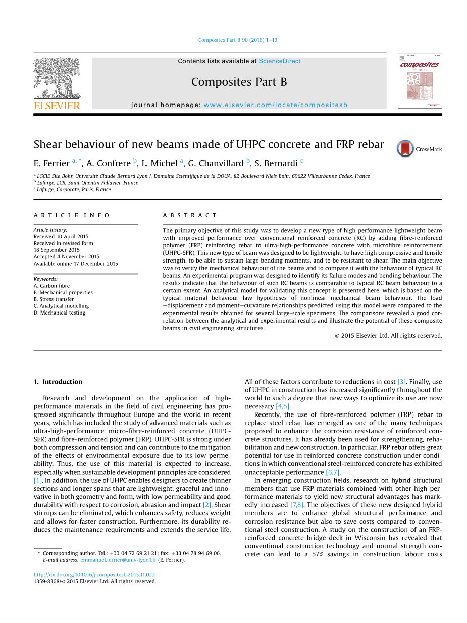 这项研究的主要目的是开发一种新型的高性能轻型梁,通过将纤维增强聚合物(FRP)增强钢筋添加到超高性能混凝土与超细纤维增强材料(UHPC-SFR)中,改善传统钢筋混凝土(RC)的性能。这种新型梁的设计重量轻,具有很高的抗压和抗拉强度,能够承受较大的弯矩,并且能够抵抗剪切作用。主要目标是验证梁的力学行为并将其与典型RC梁的行为进行比较。设计了一个实验程序来识别其失效模式和弯曲行为。结果表明,这种RC梁的行为在一定程度上与典型的RC梁特性相当。这里给出一个验证这个概念的分析模型,它是基于典型的非线性机械梁行为的材料行为定律假设。使用此模型预测的载荷位移和力矩曲率关系与几个大型标本的实验结果进行了比较。这些比较揭示了分析和实验结果之间的良好相关性,并说明了这些组合梁在土木工程结构中的潜力。