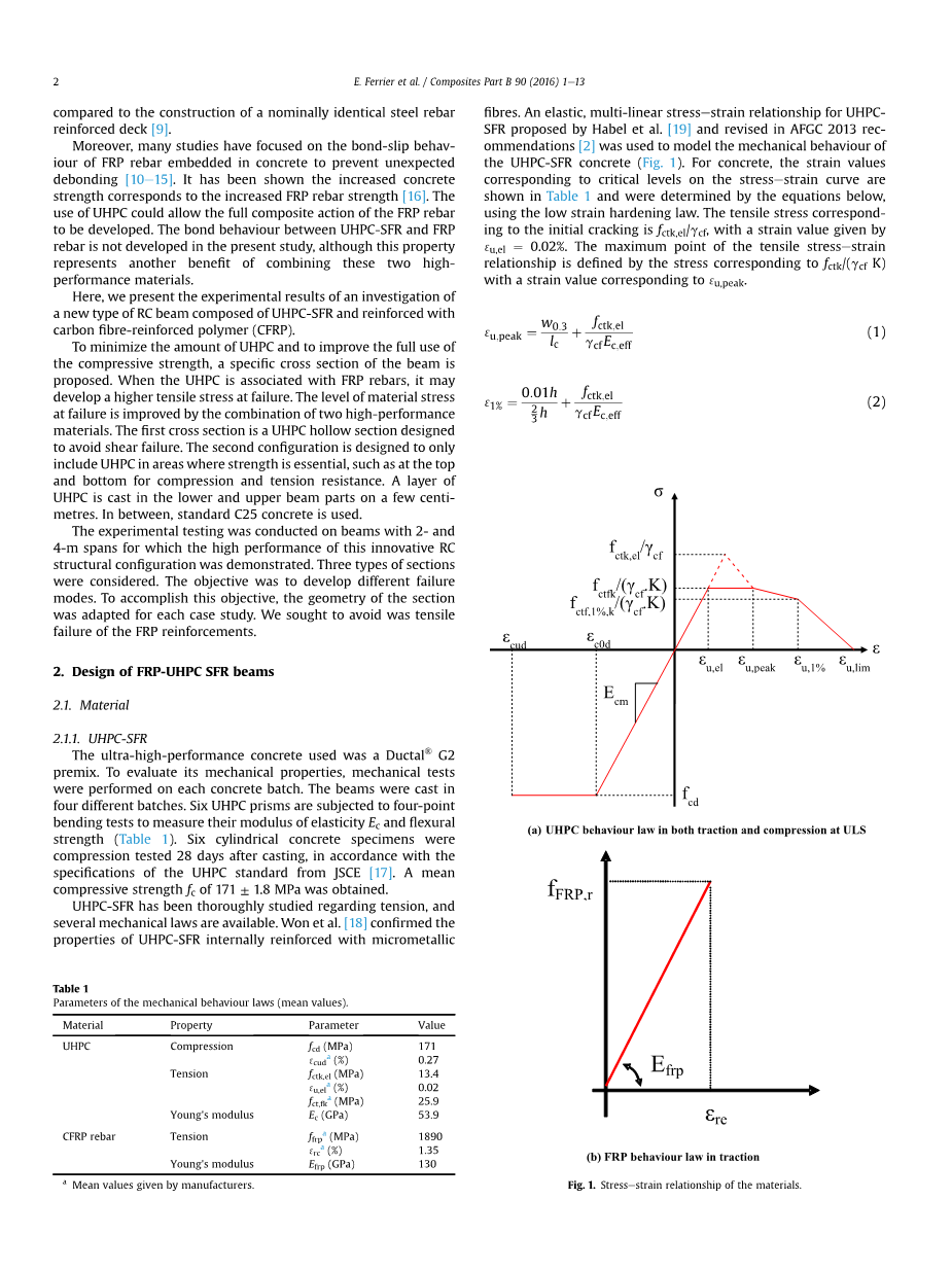 这个假设可以用于由微金属纤维内部加固的混凝土的开裂行为[2]。对于混凝土受压情况,ULS,的最大压缩应变可以等于,这是AFGC [2]初步设计推荐的值。